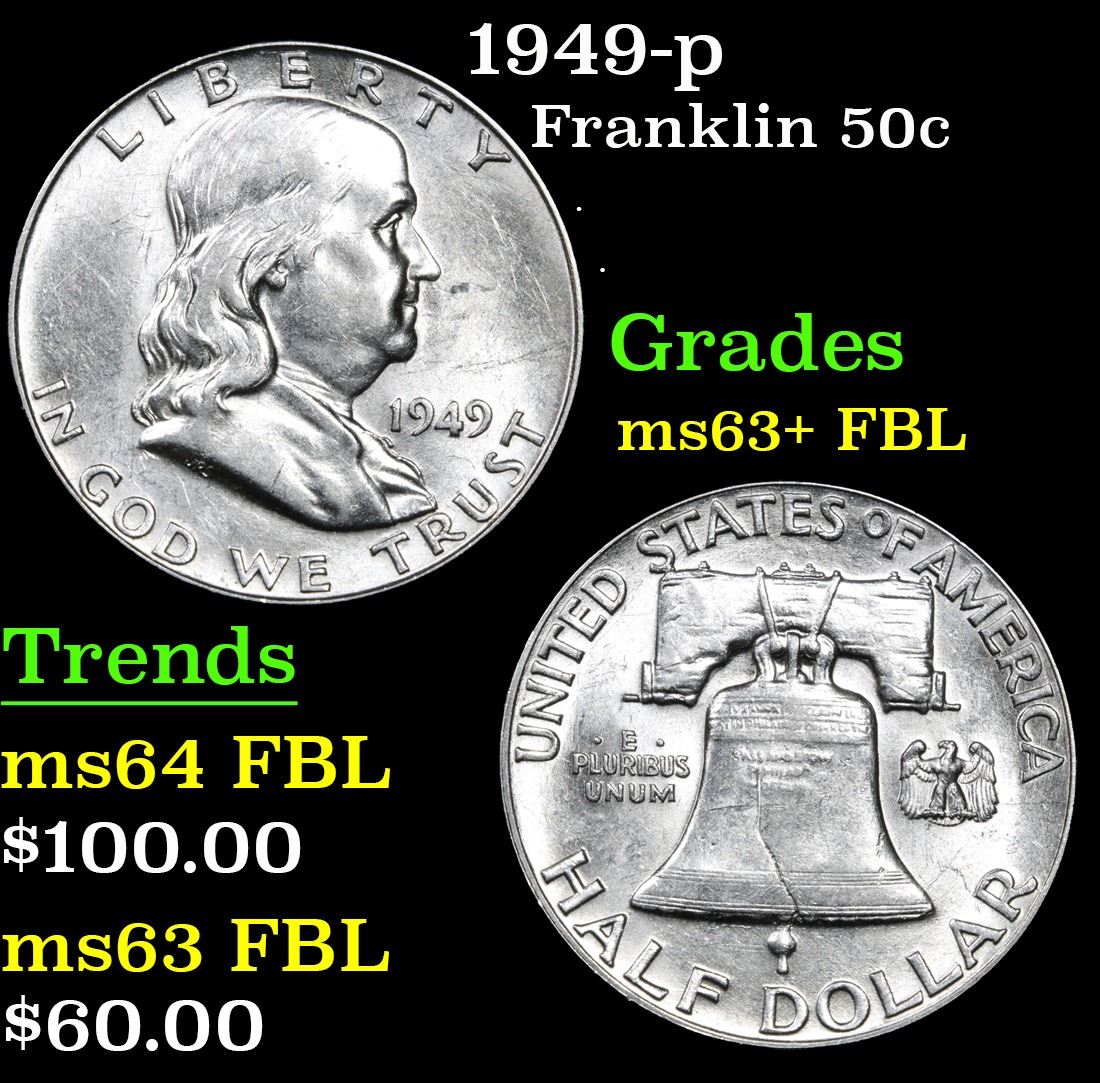 1949-p . . Franklin Half Dollar 50c Grades Select Unc+ FBL.