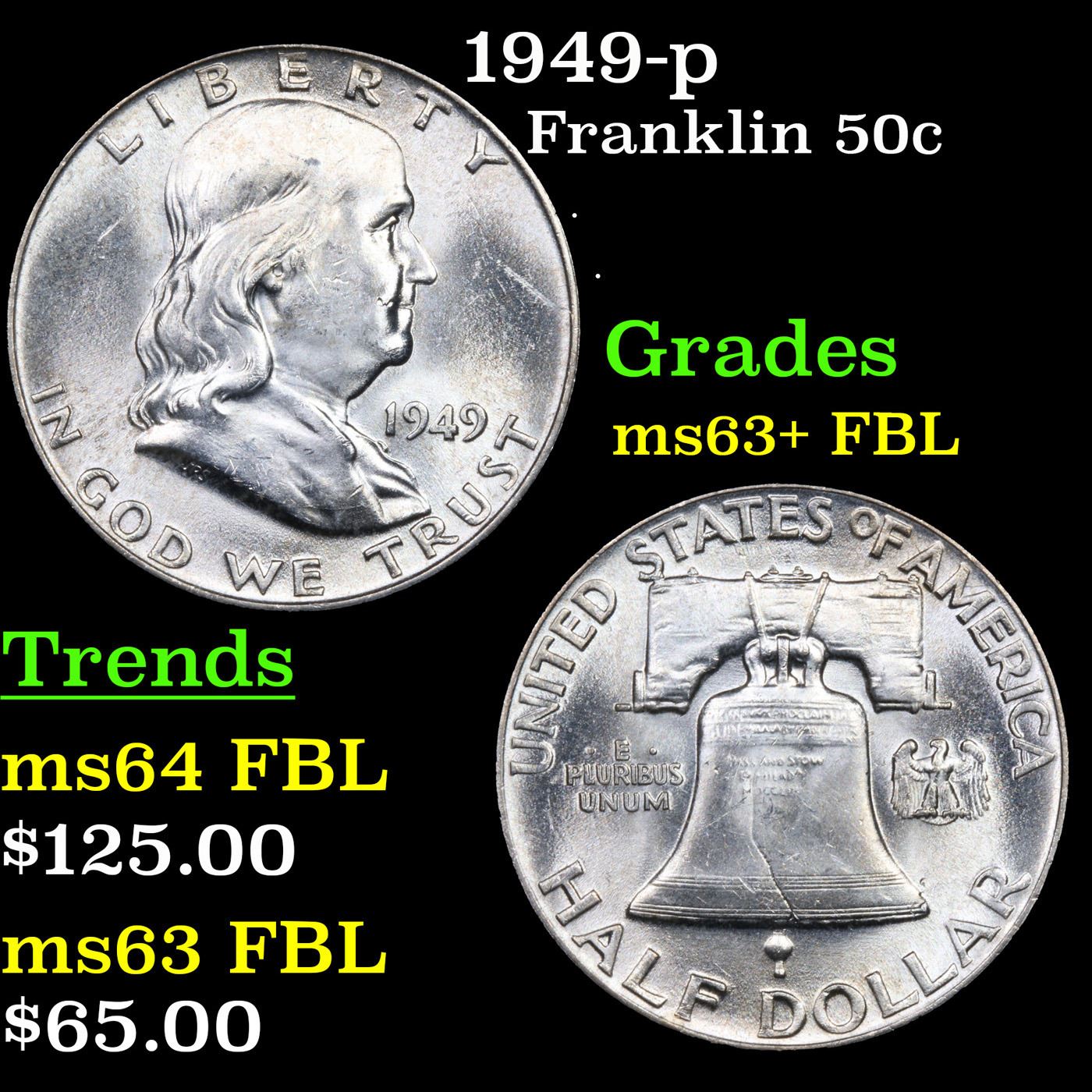 1949-p Franklin Half Dollar 50c Grades Select Unc+ FBL.