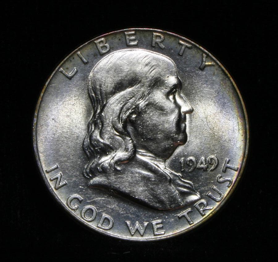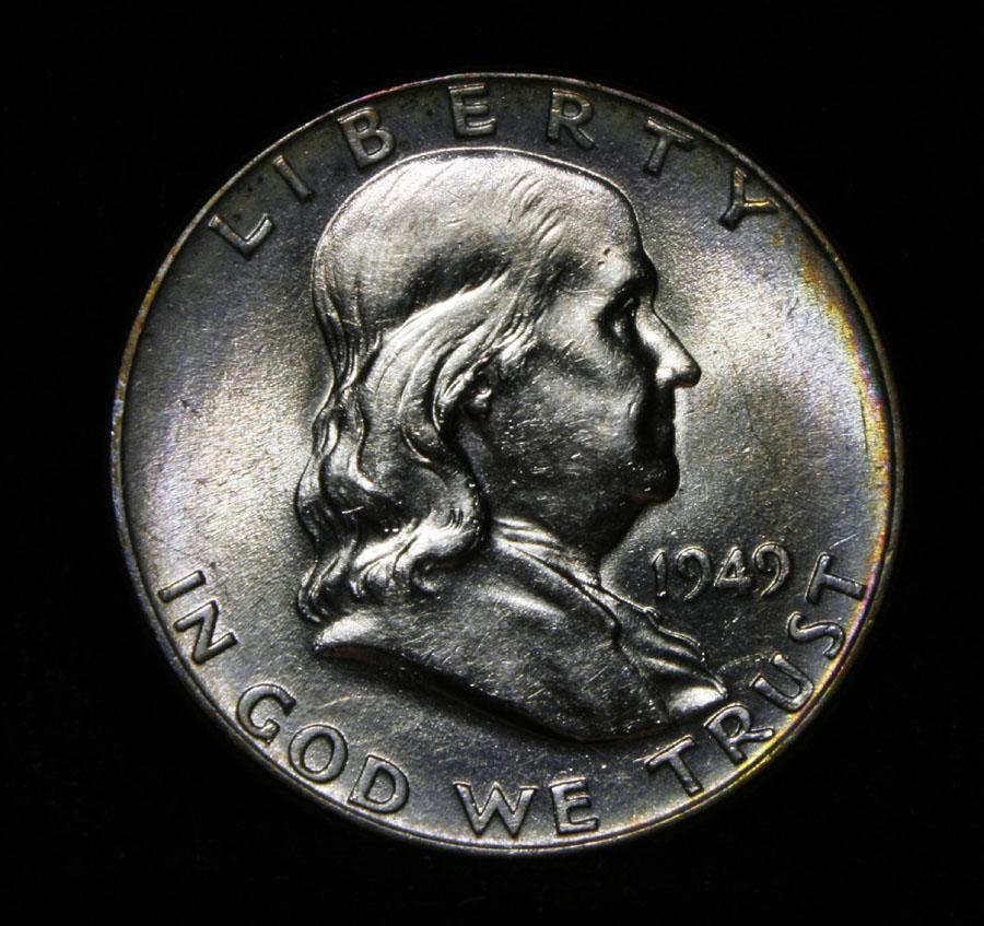 Gorgeous Rainbow Toned Franklin. Great Luster and Full Bell Lines. A PQ Coin. Coin World's Coin Values lists ms64 FBL as $90, but that’s without the color. Estimated Value $75