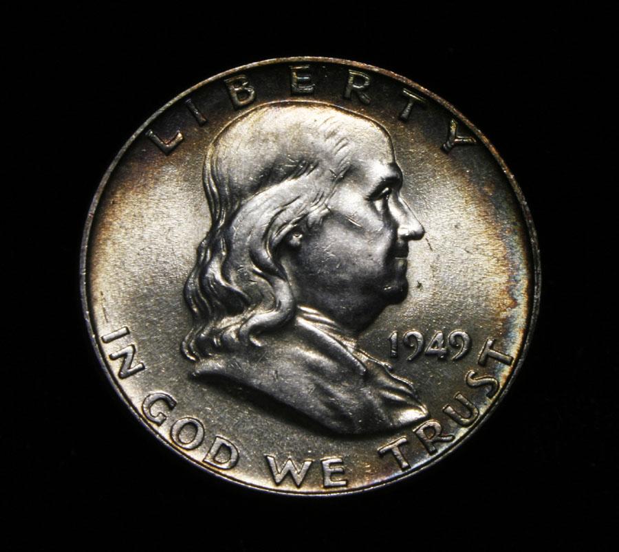 Beautiful Toning with a nice blue across the top of the Obverse. Coin World's Coin Values lists ms63 at $60 and The Wholesale Greysheet lists ms63 at $50. Estimated Value $60