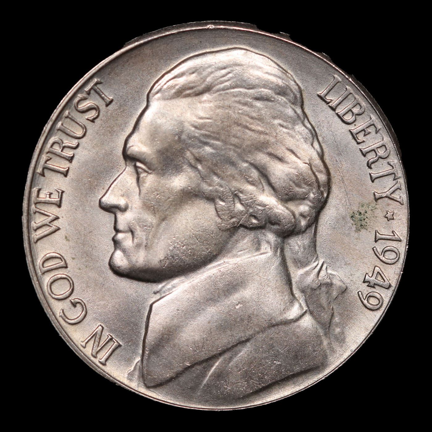 1949-p Jefferson Nickel 5c Grades GEM Unc.