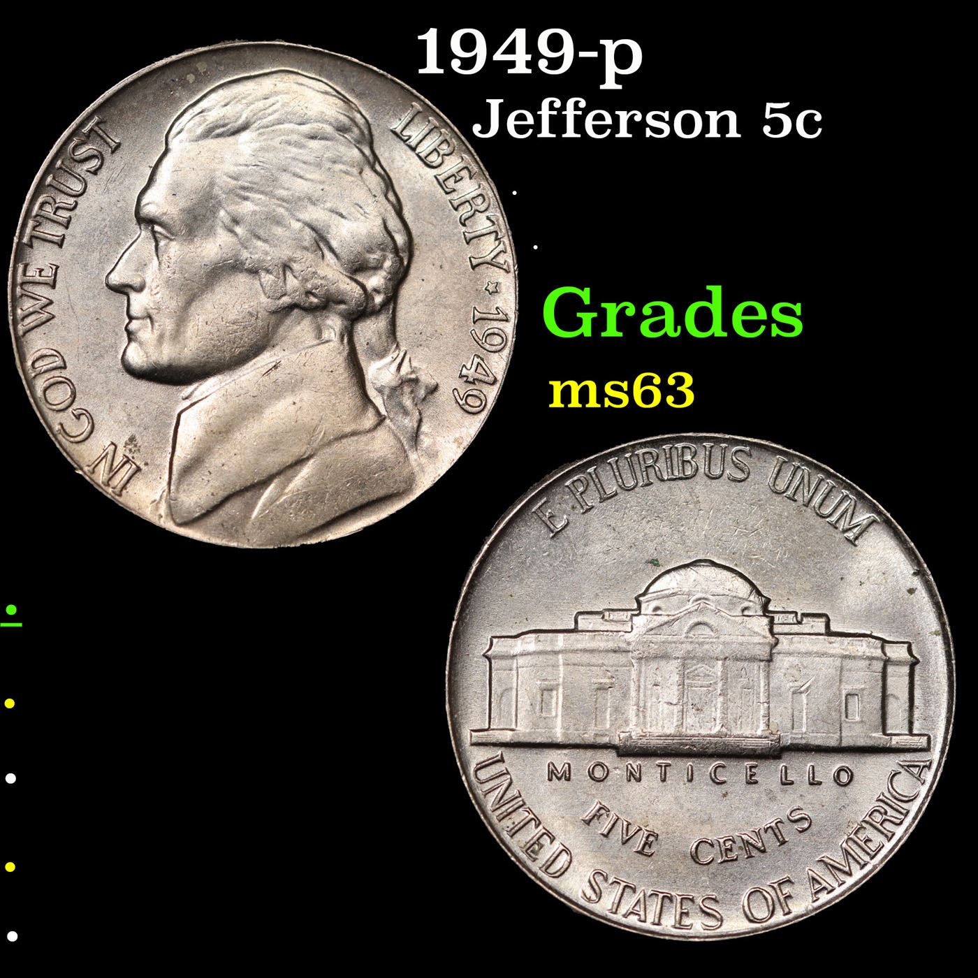 1949-p Jefferson Nickel 5c Grades Select Unc.