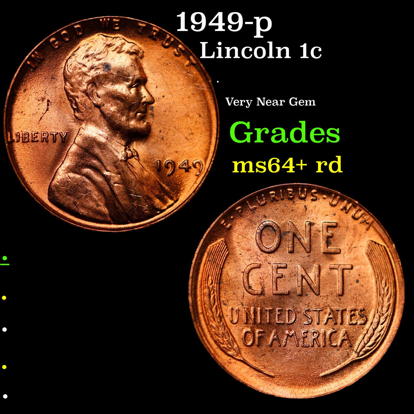 1949-p Lincoln Cent 1c Grades Choice+ Unc RD.