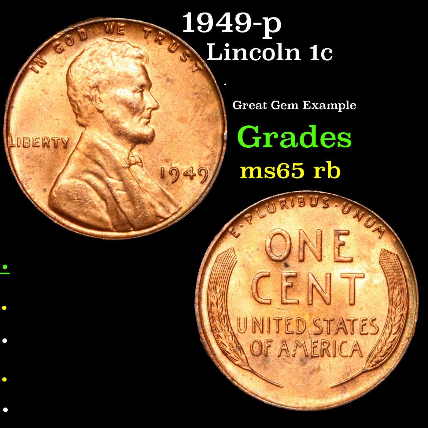 1949-p Lincoln Cent 1c Grades GEM Unc RB.