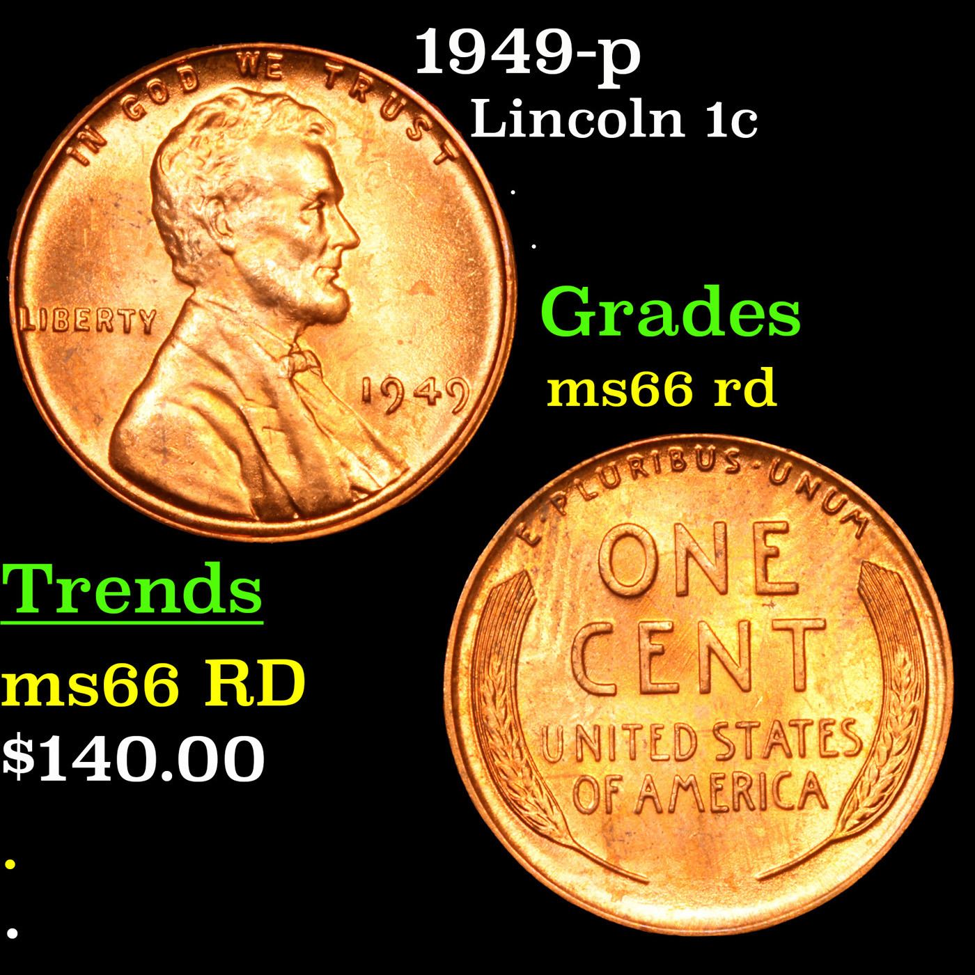 1949-p Lincoln Cent 1c Grades GEM+ Unc RD.