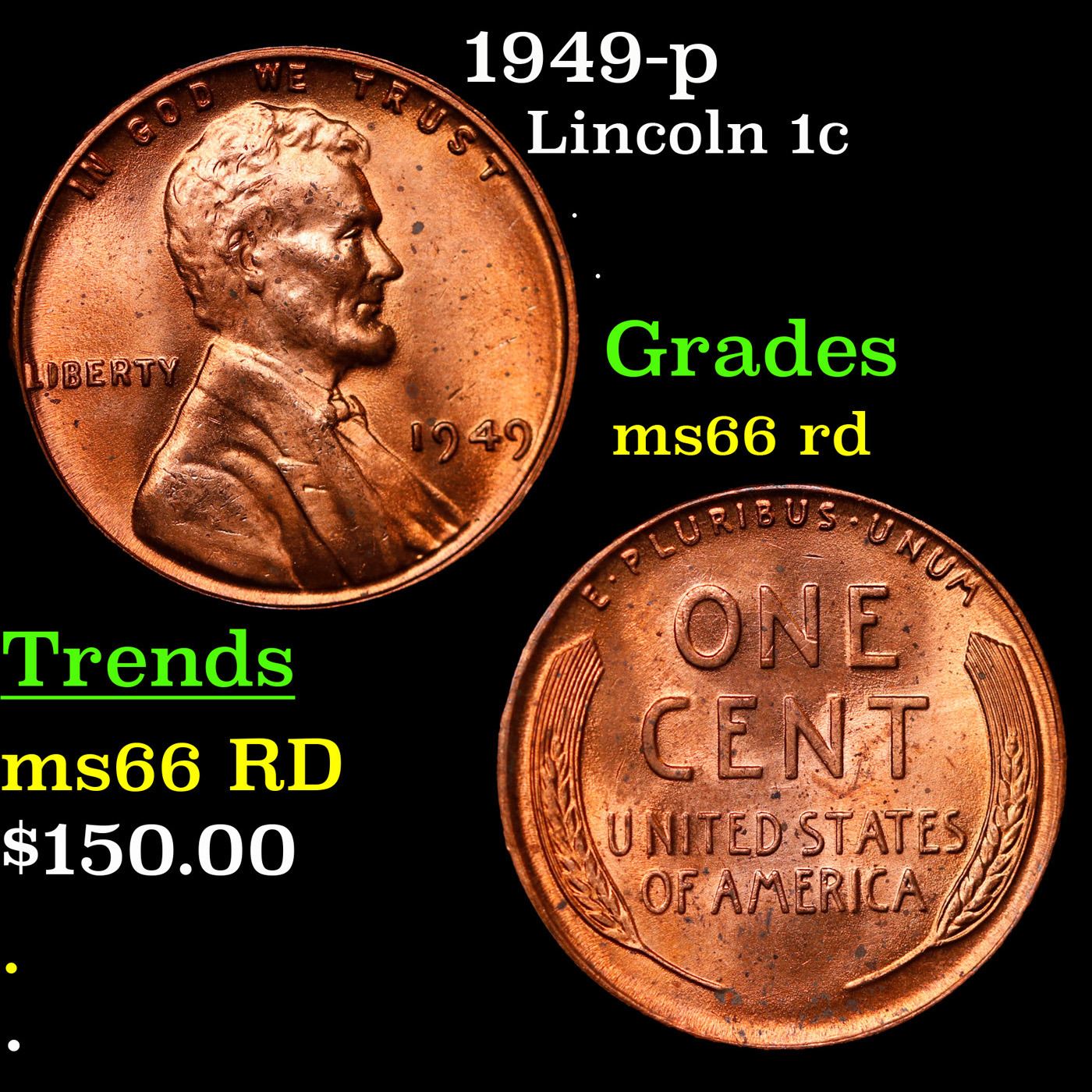 1949-p Lincoln Cent 1c Grades GEM+ Unc RD.