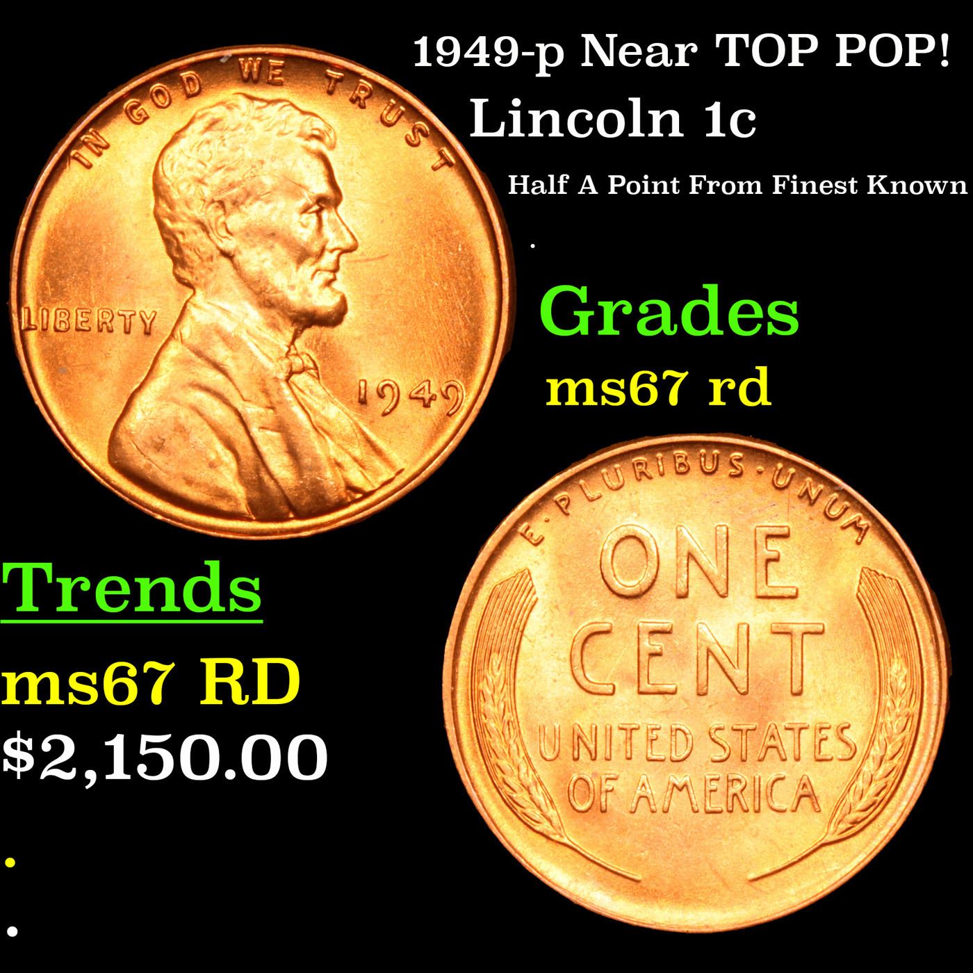 1949-p Near TOP POP! Lincoln Cent 1c Graded GEM++ Unc RD BY USCG.