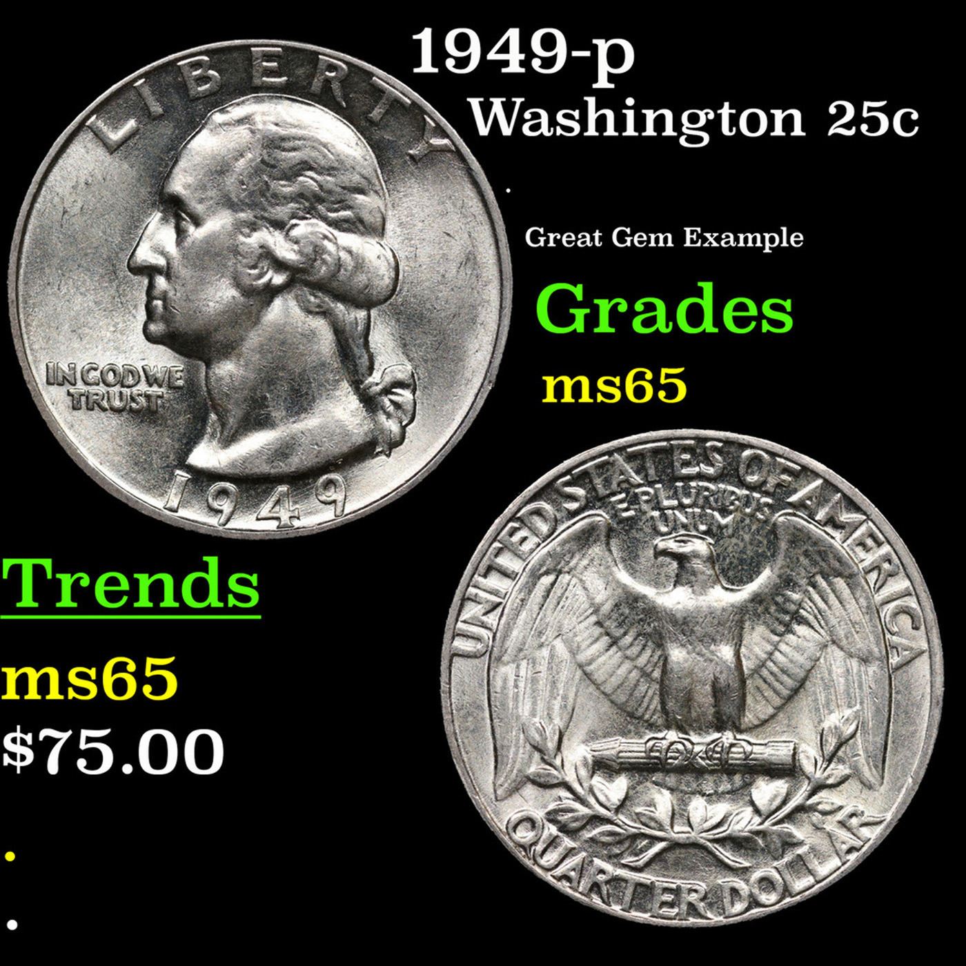 1949-p Washington Quarter 25c Grades GEM Unc.