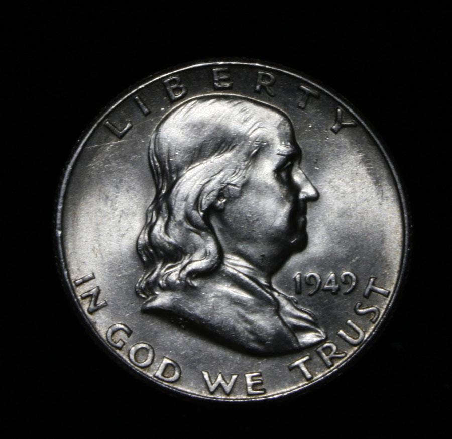 Nice luster good eye appeal. A roll of 1949-s Halves Wholesale bid is $1675.00 20 coins in a roll so each coin at roll price is $83.75 Coin World's Coin Values lists ms64 at $125.00. Estimated Value $100
