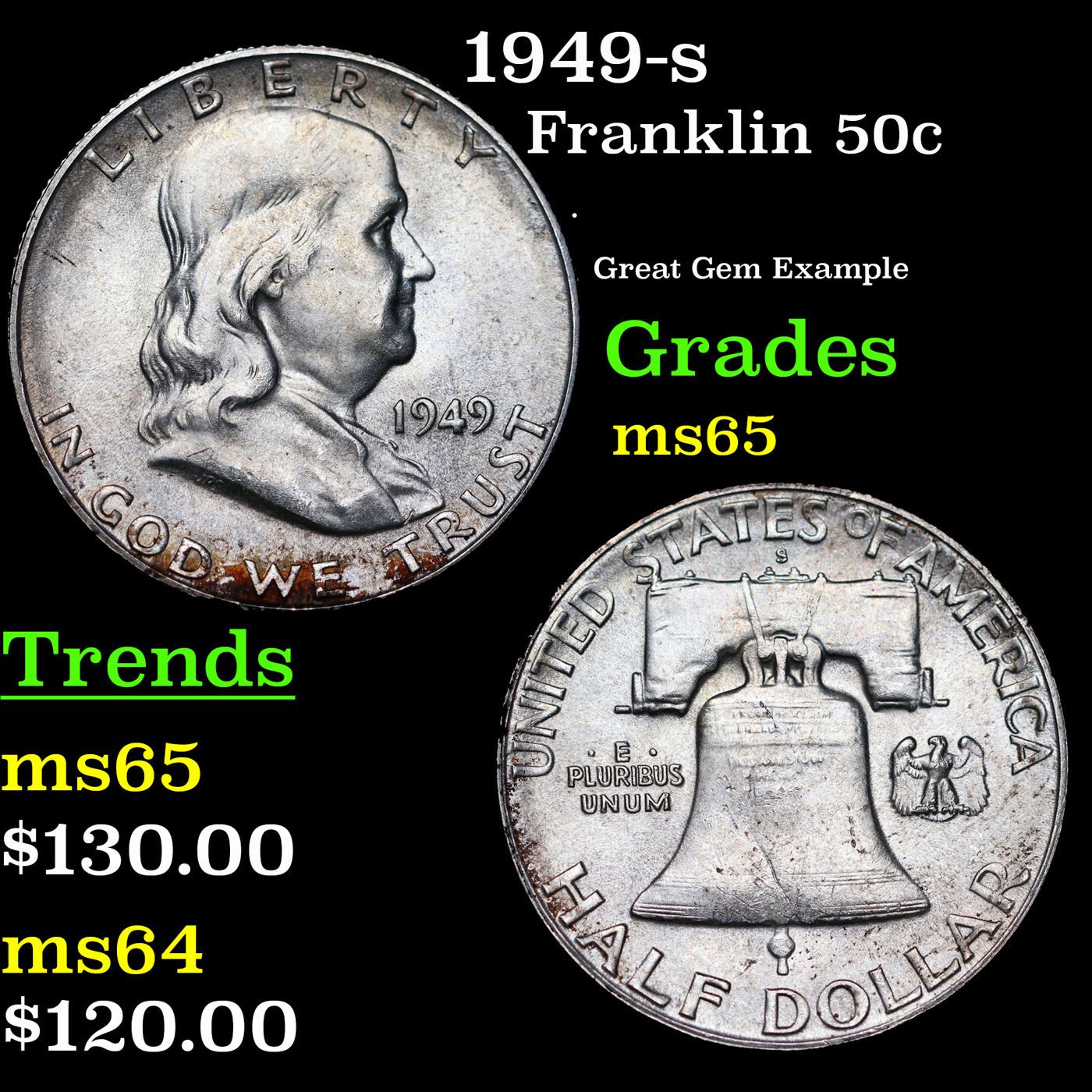 1949-s Franklin Half Dollar 50c Grades GEM Unc.