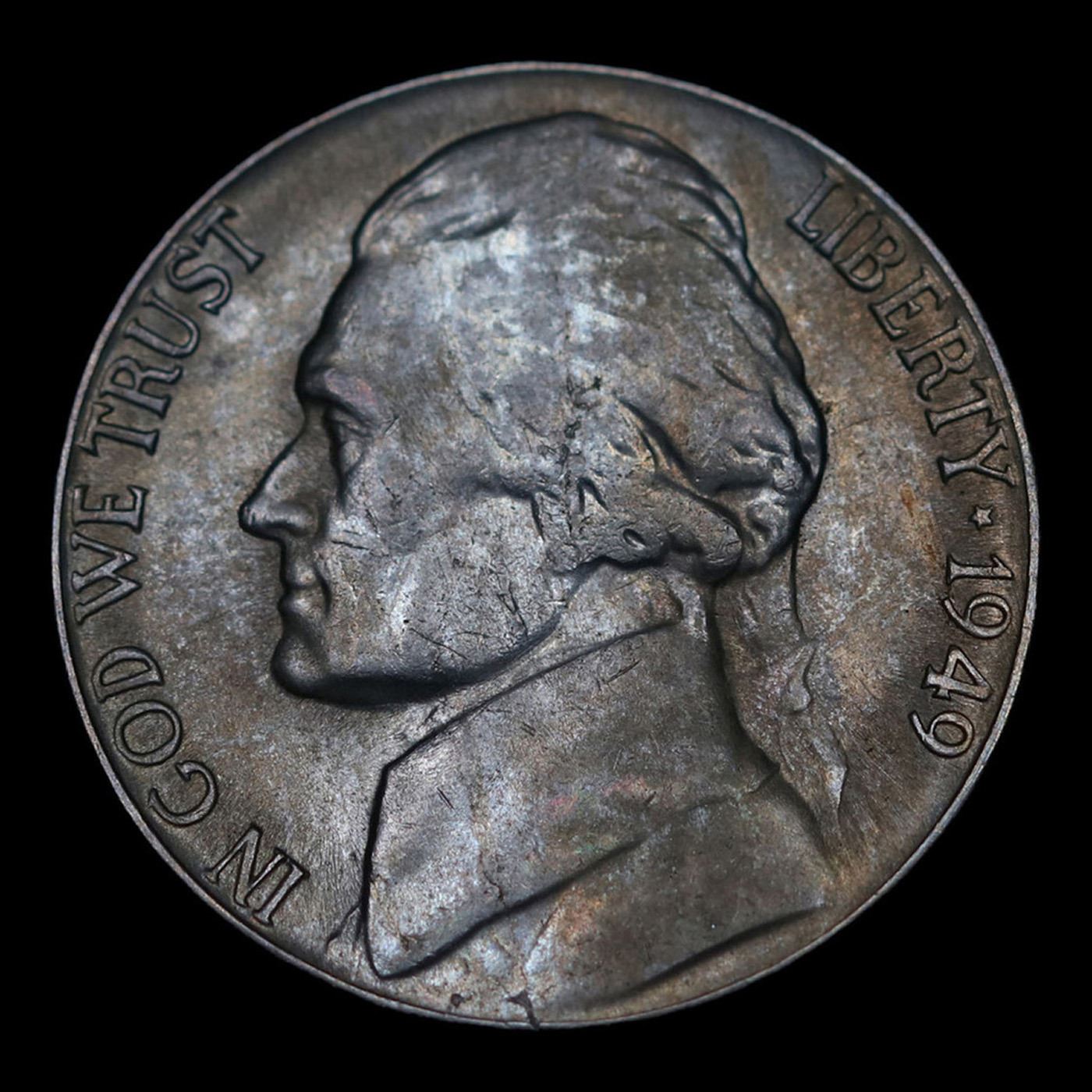 1949-s Mint Error Jefferson Nickel 5c Grades Choice AU/BU Slider.