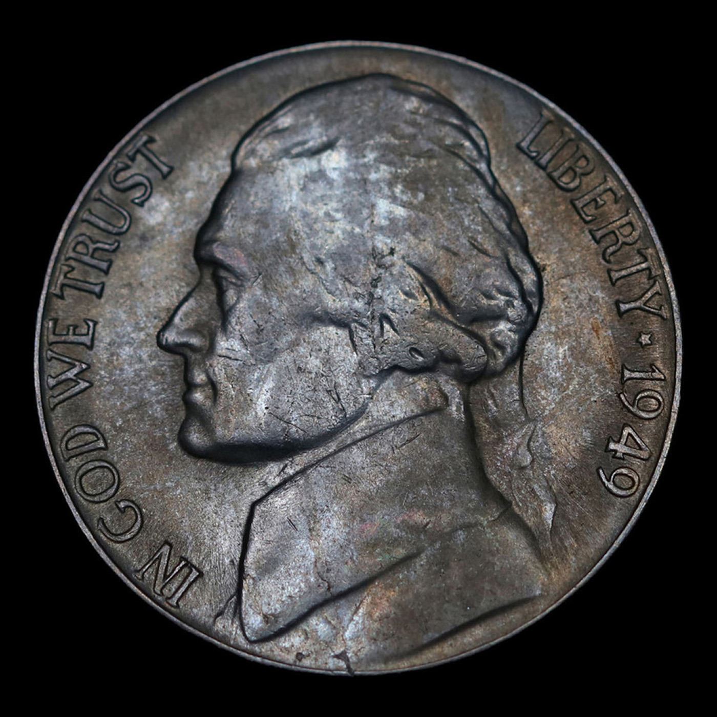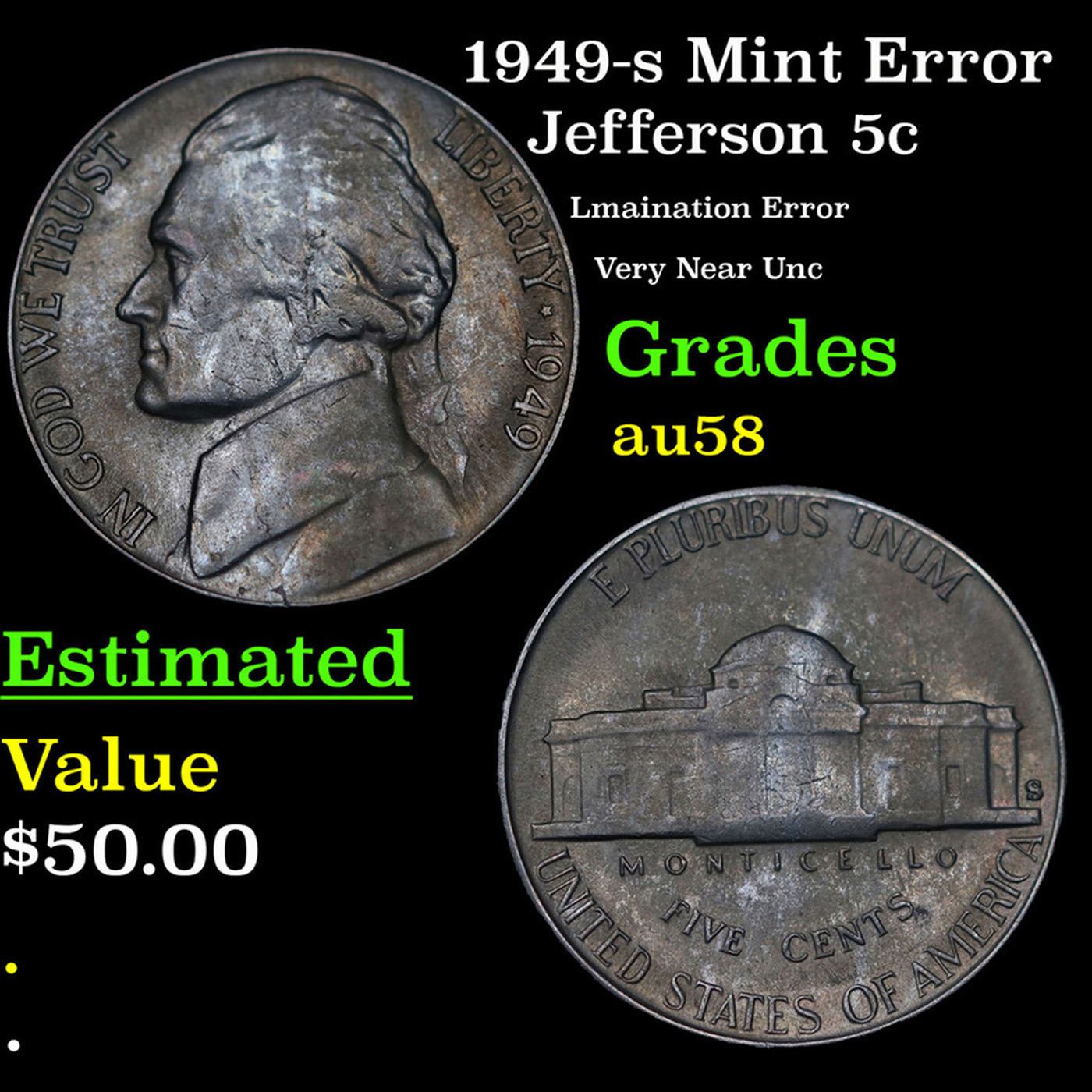 1949-s Mint Error Jefferson Nickel 5c Grades Choice AU/BU Slider.