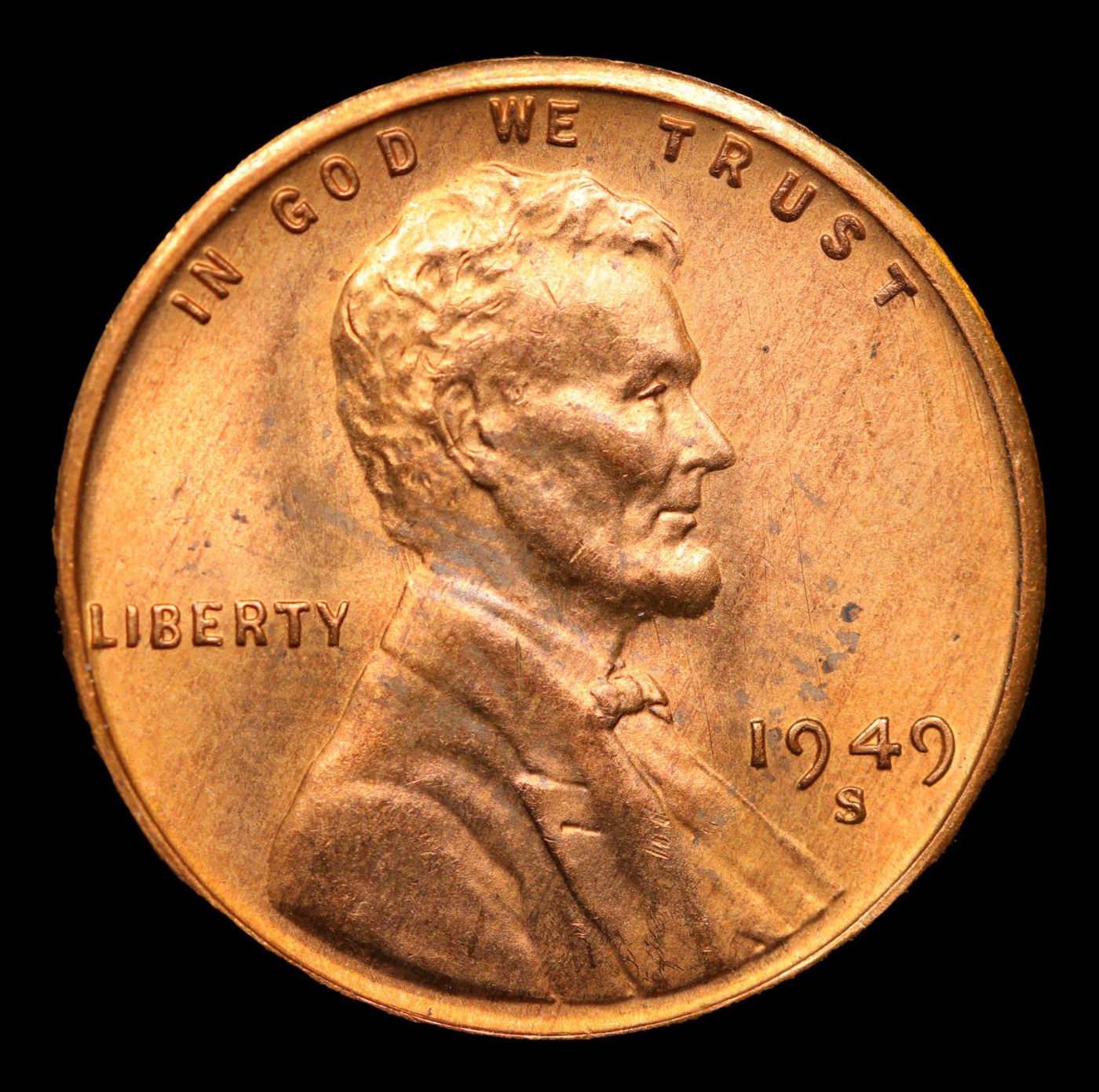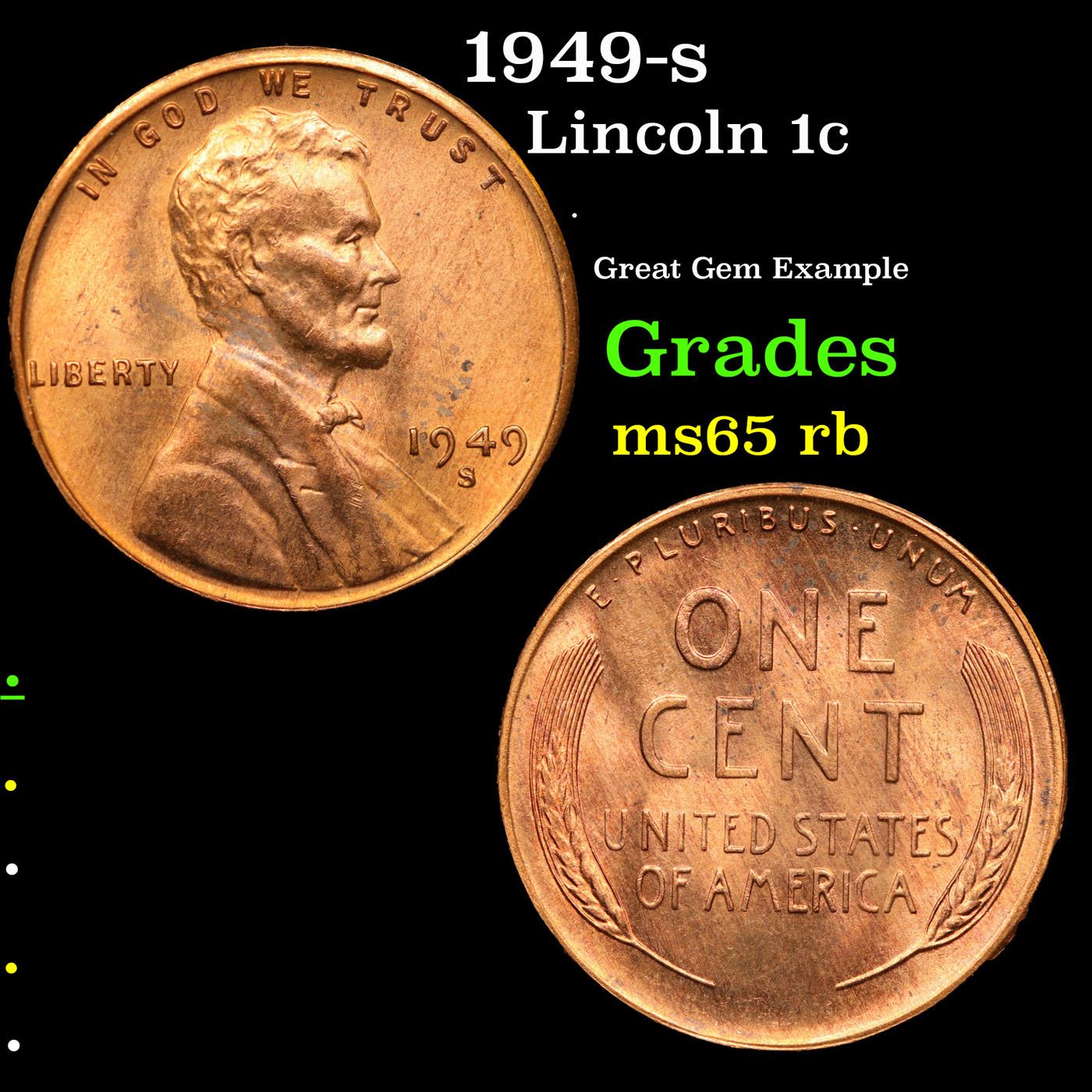1949-s Lincoln Cent 1c Grades GEM Unc RB.