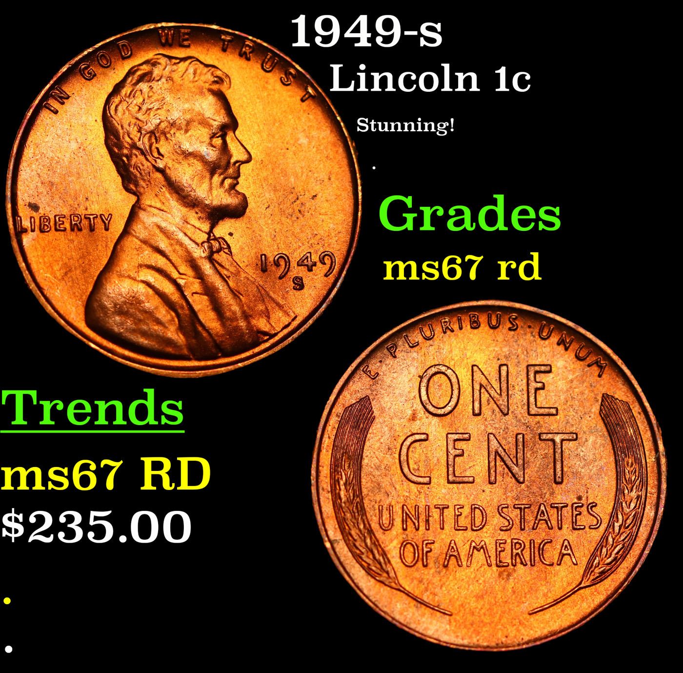 1949-s Lincoln Cent 1c Grades GEM++ Unc RD.