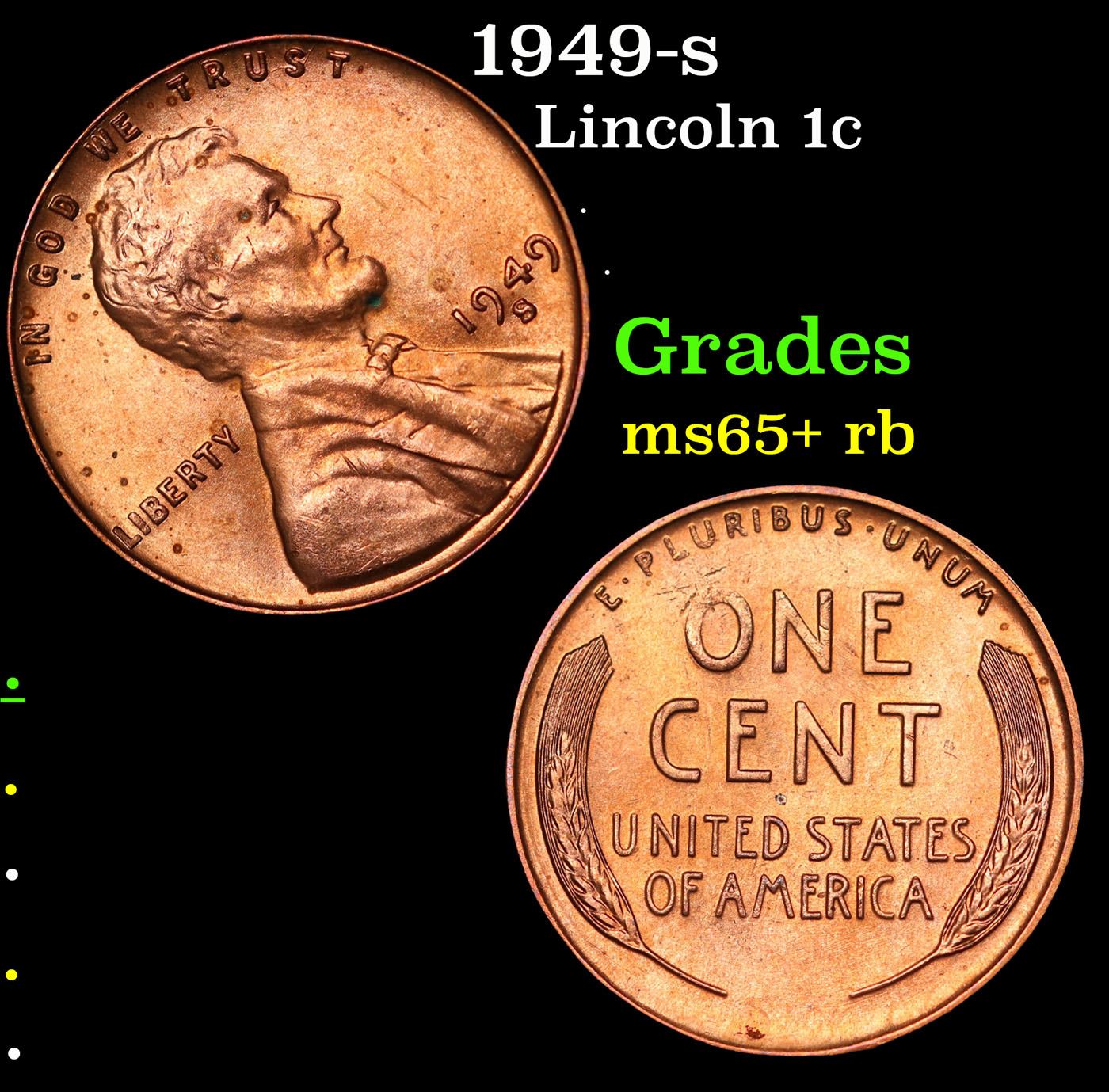 1949-s Lincoln Cent 1c Grades Gem+ Unc RB.