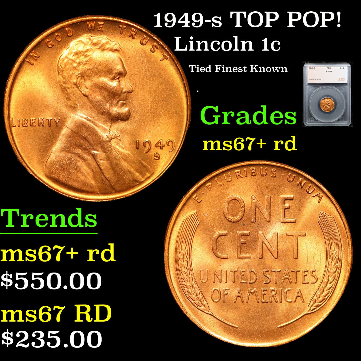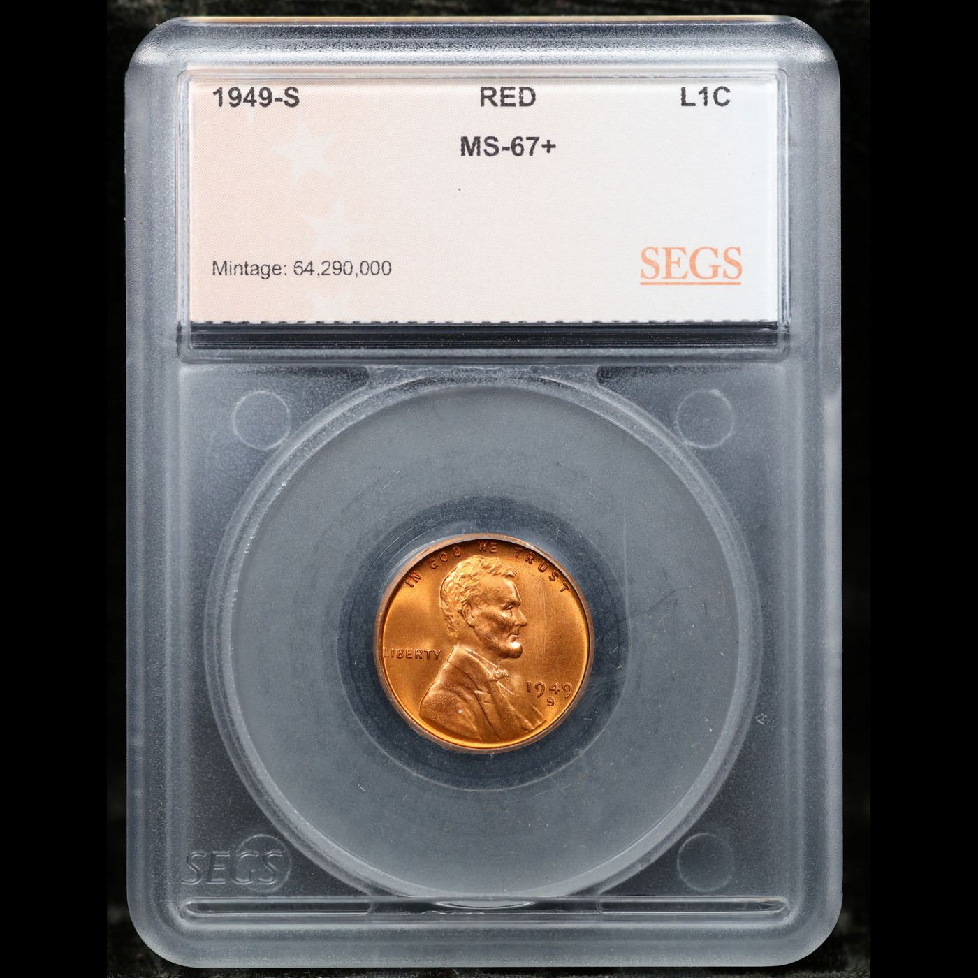 1949-s TOP POP! Lincoln Cent 1c Graded ms67+ rd By SEGS. A Corey's Pick, Bid to Win, Don't let it get Away, you might not find its equal Coin. I give this coin my highest recommendation