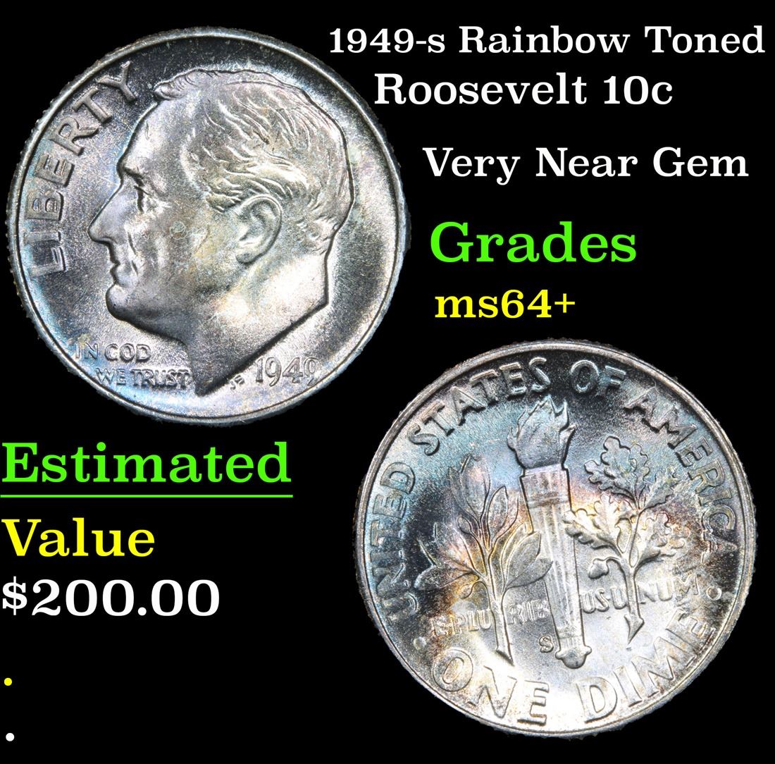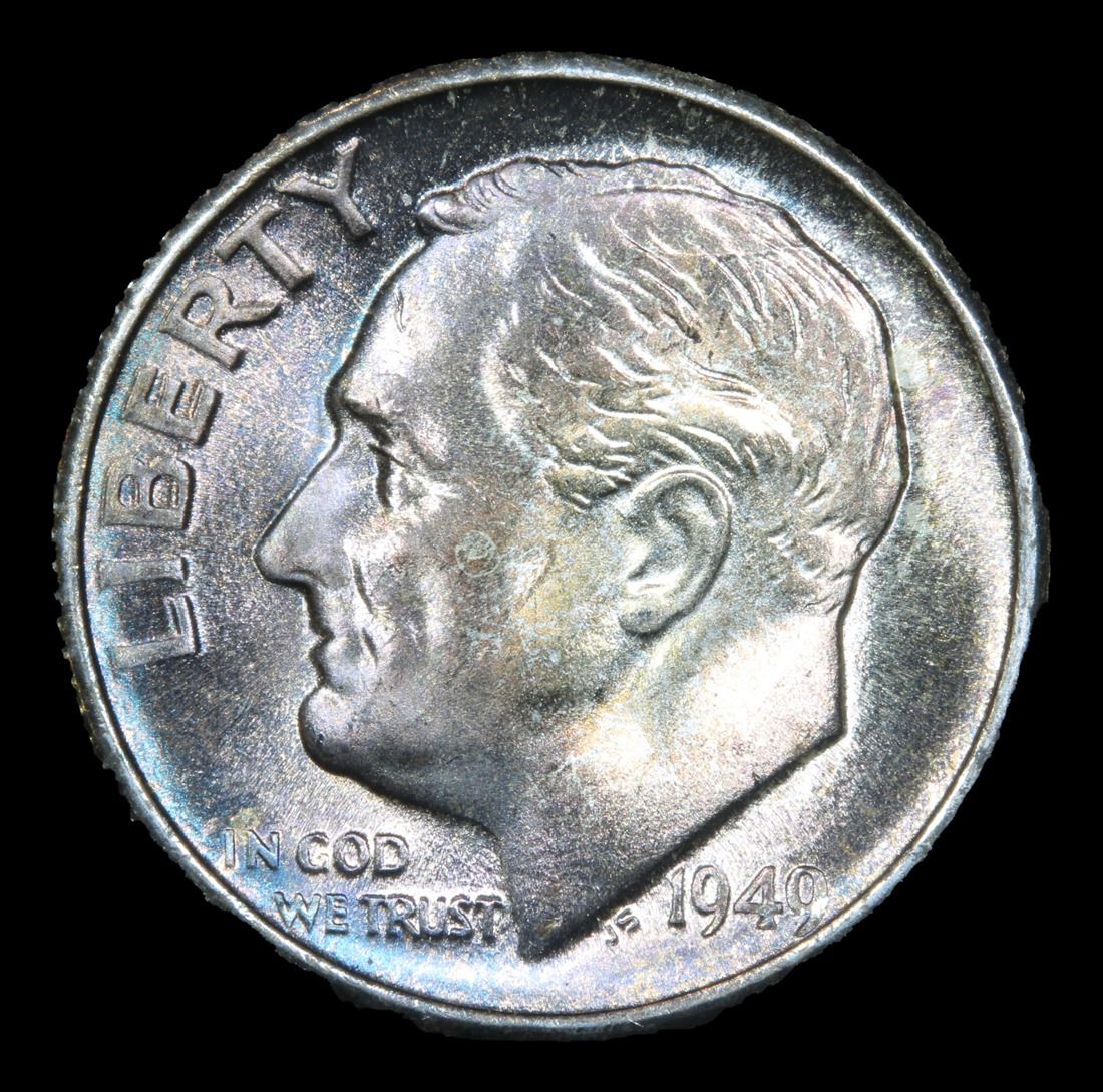 1949-s Rainbow Toned . Very Near Gem Roosevelt Dime 10c Grades Choice+ Unc.