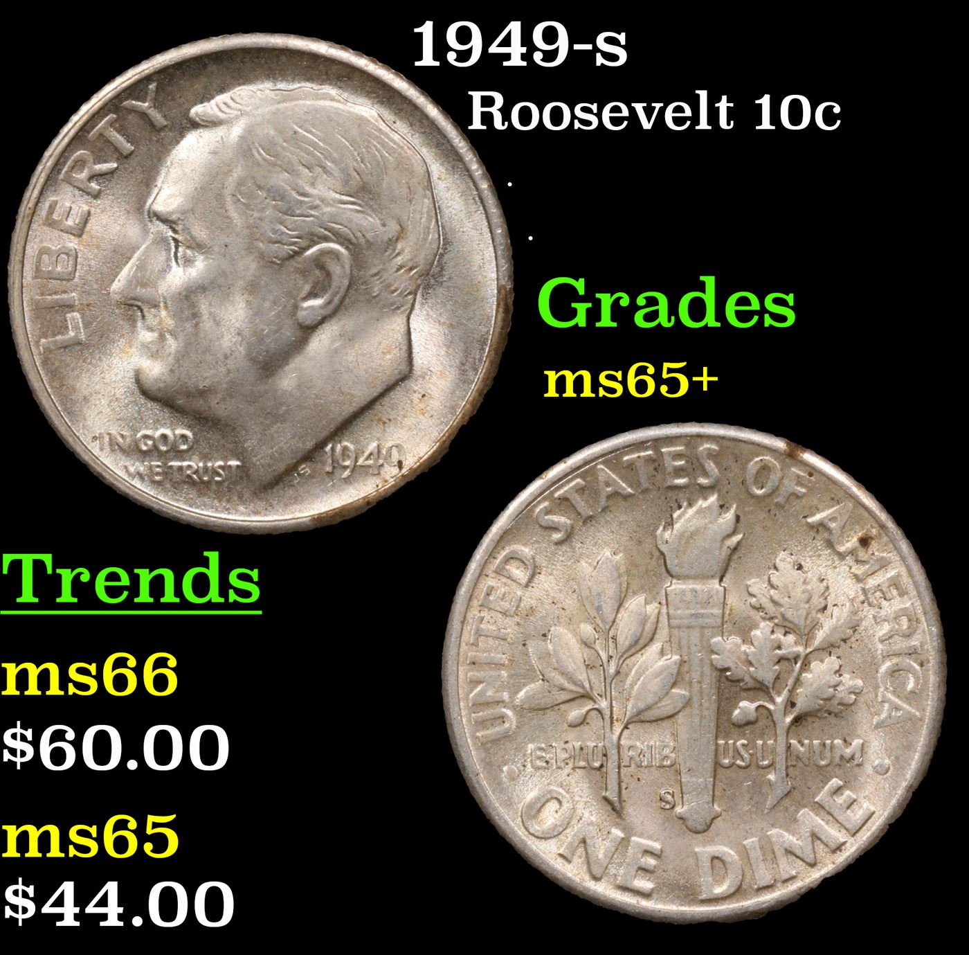 1949-s Roosevelt Dime 10c Grades GEM+ Unc.