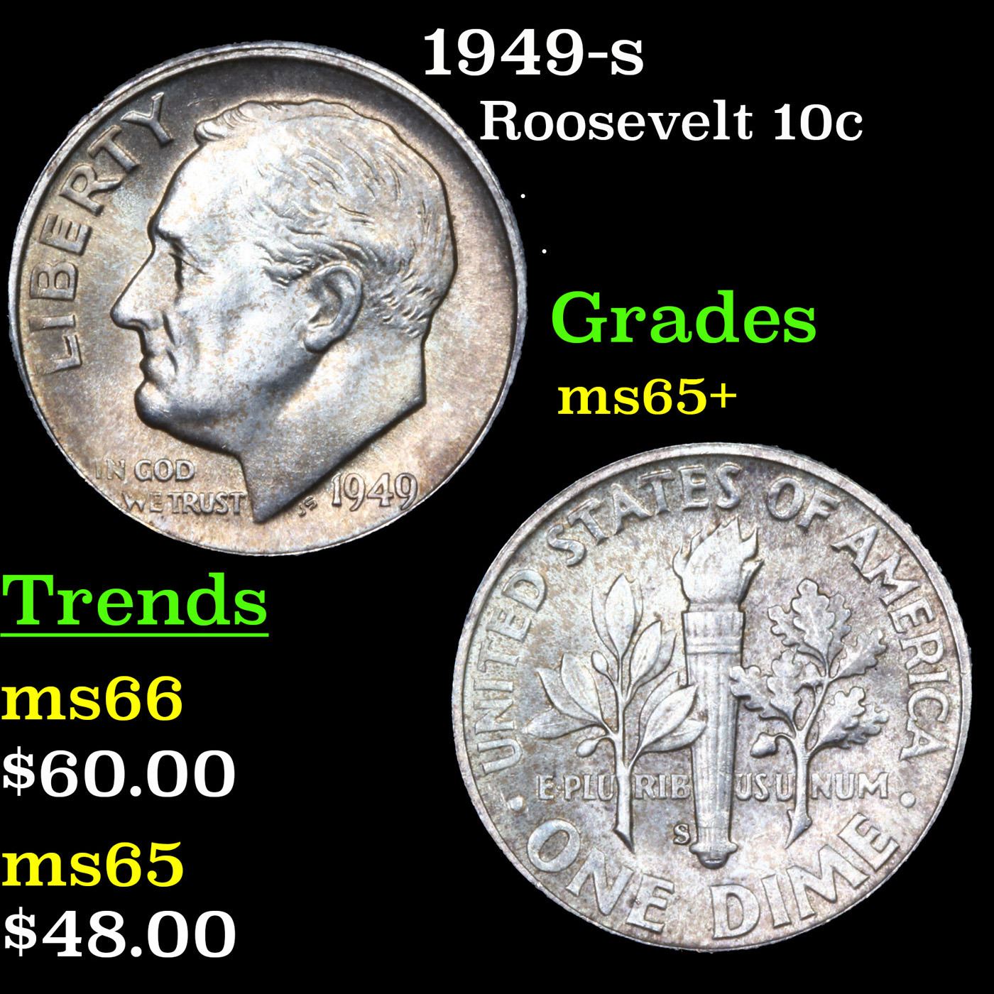 1949-s Roosevelt Dime 10c Grades GEM+ Unc.