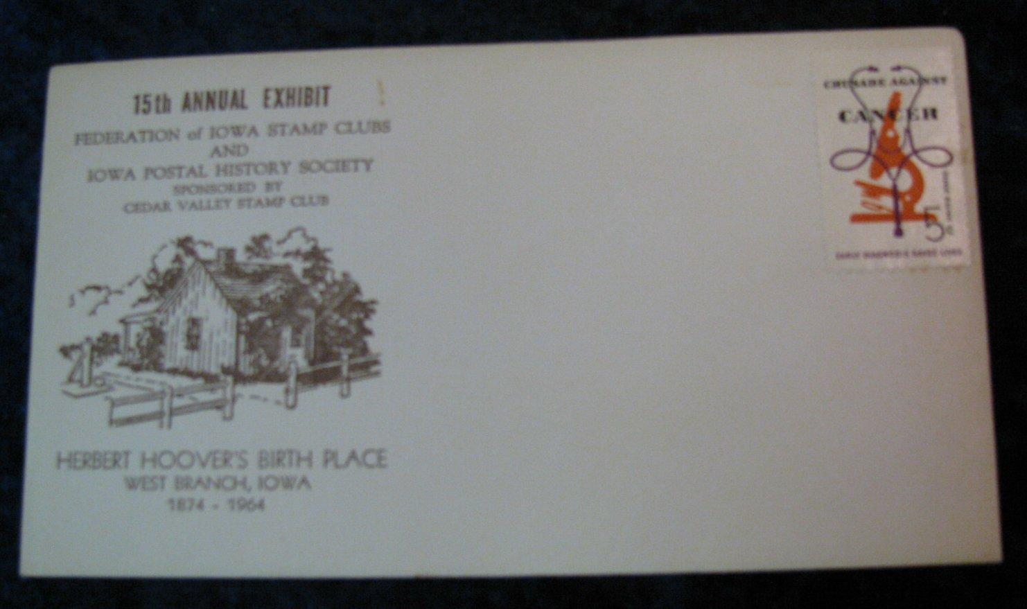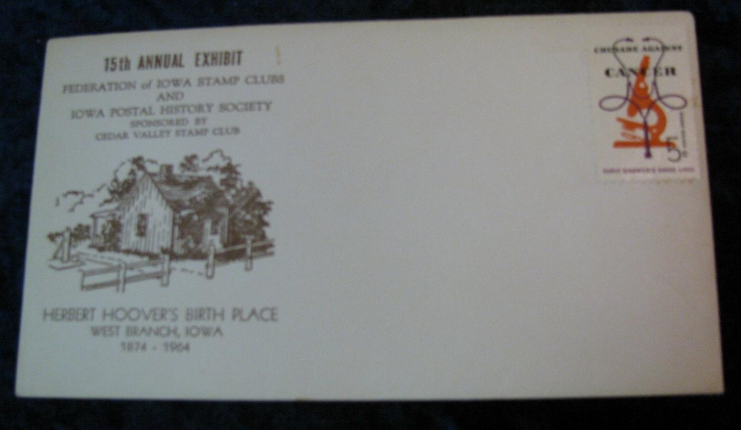 195. 1874-1964 West Branch, Iowa 15th Annual Exhibit Cover with uncancelled 5c Cancer Stamp.