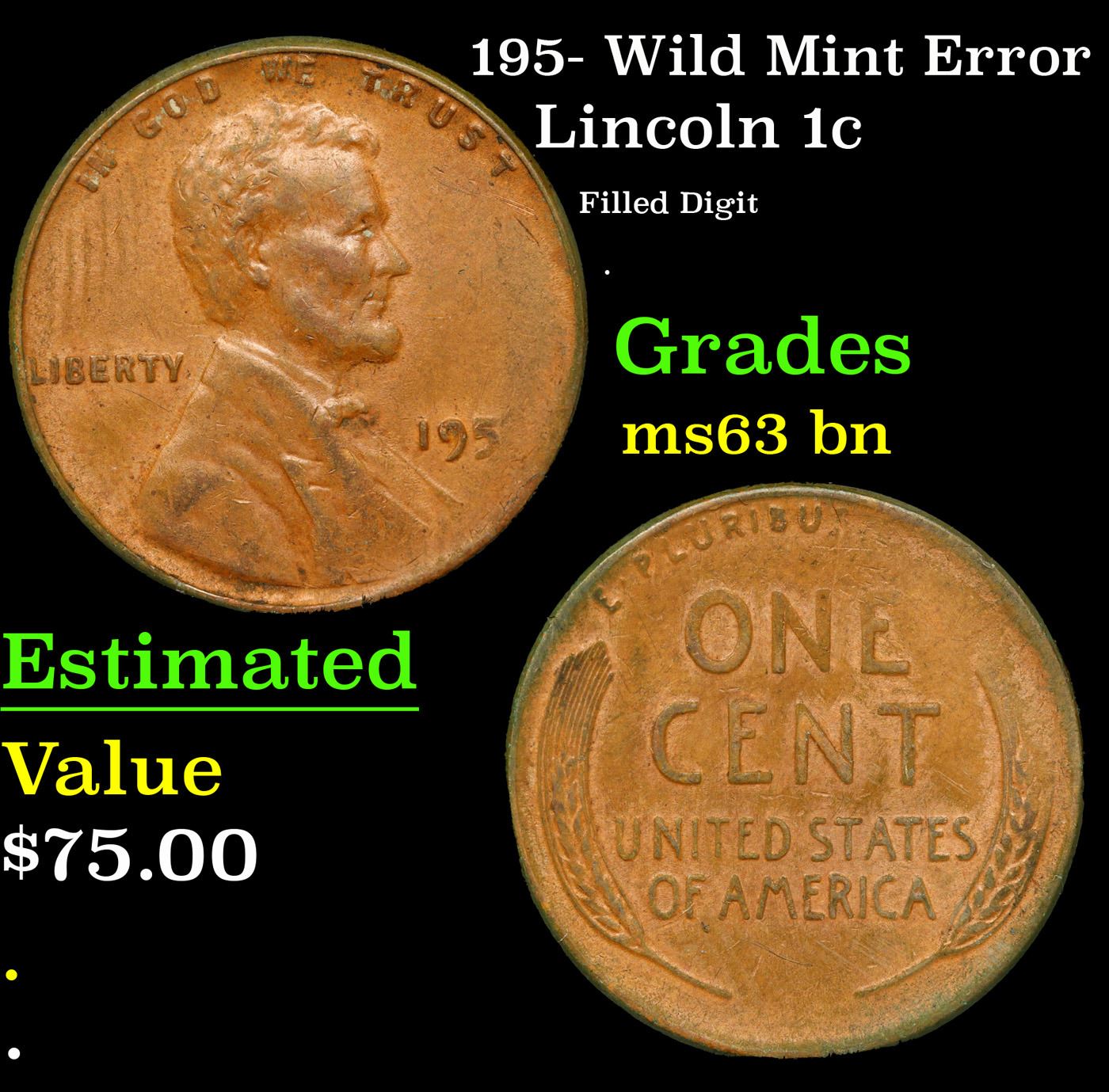 195- Wild Mint Error Lincoln Cent 1c Grades Select Unc BN.
