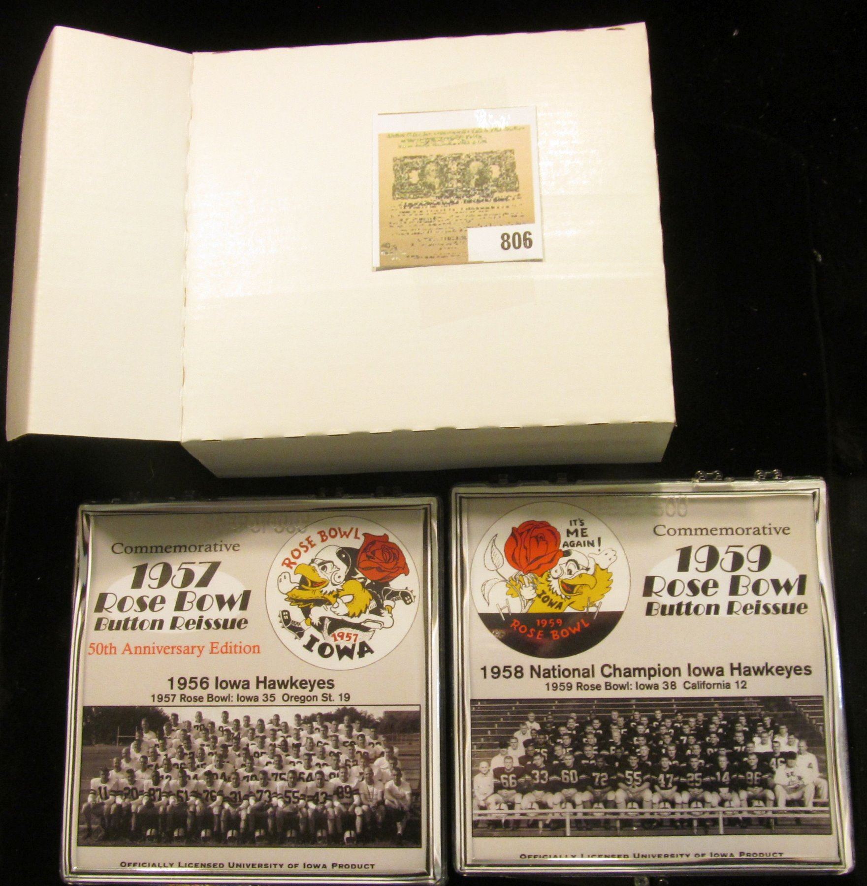 195 of 500 "Commemorative 1957 Rose Bowl Button Reissue 50th Anniversary Edition" & 1959 Rose Bowl Button Reissue National Champion Edition" in original plastic case of issue. I believe this was reissued in 2007 at a price of $250 each according to the records I could find.