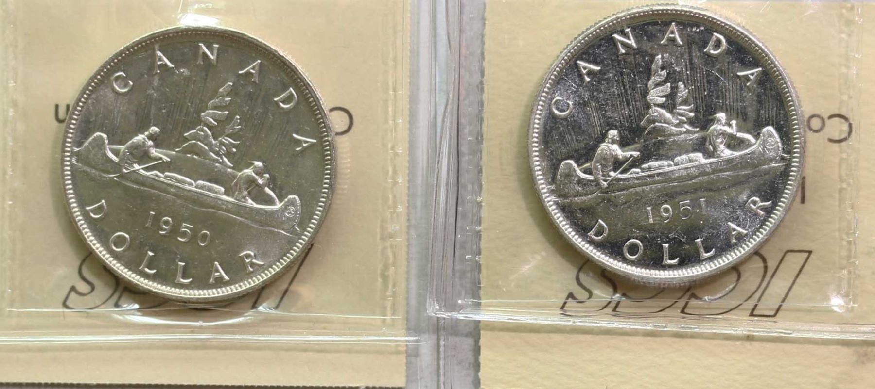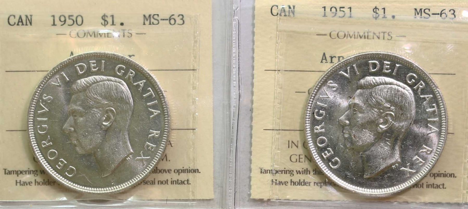 1950 $1 "Arnprior", 1951 "Arnprior" Both coins Fully brilliant and lustrous ICCS Choice Mint State-63