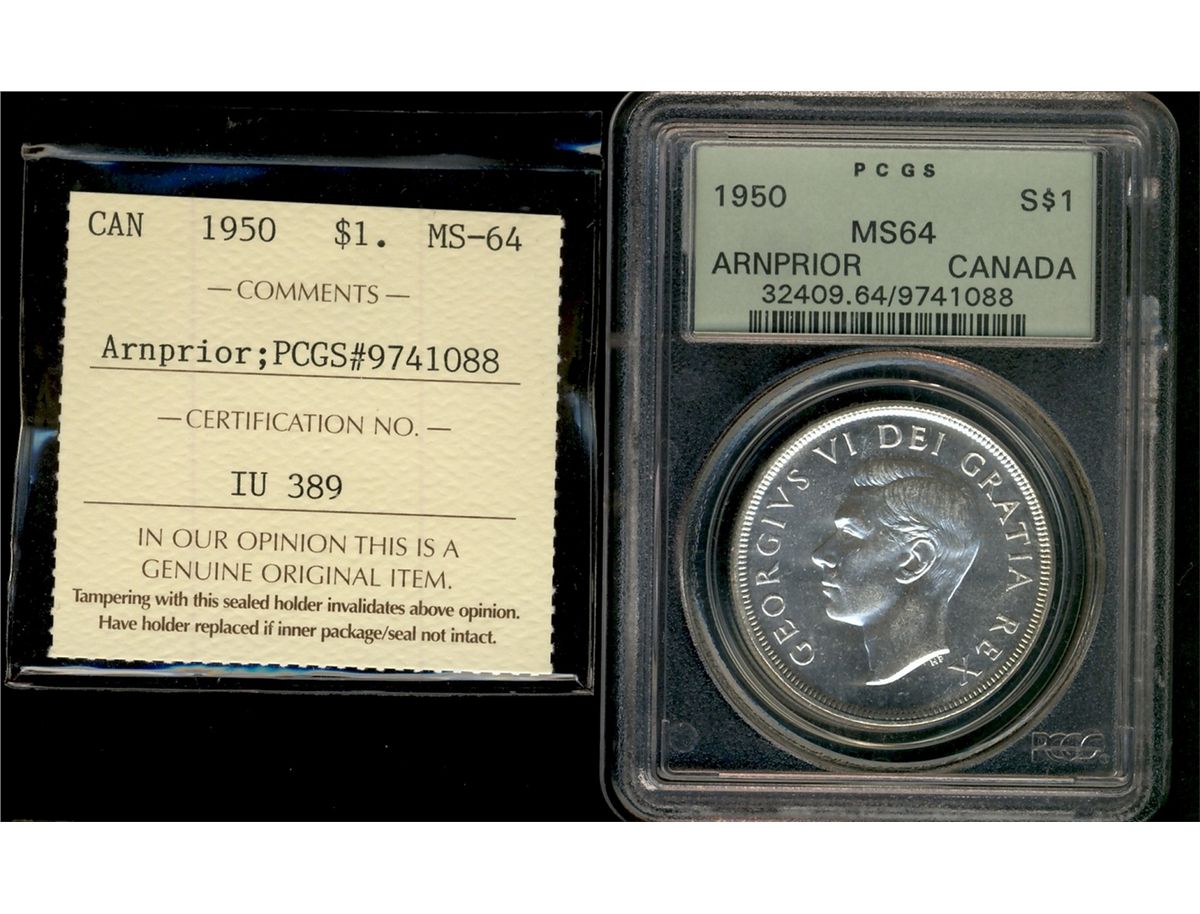 1950 $1 Arnprior PCGS/ICCS MS64. A nice issue with full lustre.
