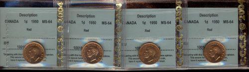 1950 1¢ CCCS MS64 Red. Lot of 4 pieces.