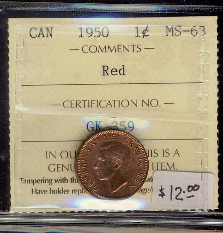 1950 1¢ ICCS MS63 Red