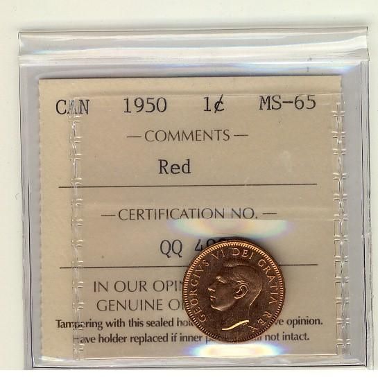 1950 1¢ ICCS MS65 Red