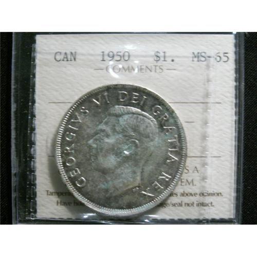 1950 $1 ICCS MS65PQ Light gold and russet tones with full underlying luster. A great example.