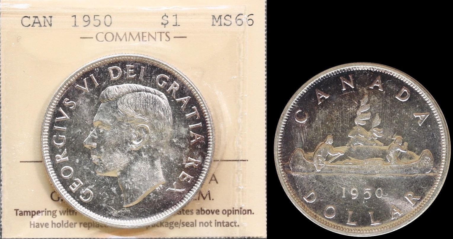 1950 $1 ICCS Superb Gem Mint State-66. A nice example with superb fields