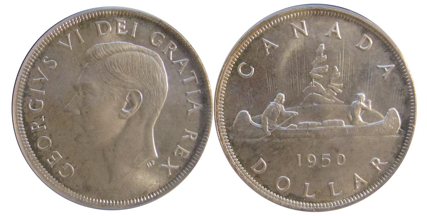 1950 $1 PCGS AND ICCS MS68PQ. A perfect example. Magnificient strike with a touch of gold and pink toning over full underlying luster. Great fields and superb surfaces. Possibly the finest known example. The coin has been cross graded which means that ICCS and PCGS assigned the same grade. This coin presents an important opportunity for Registry Set collectors. Expect strong bidding. Excessively rare!