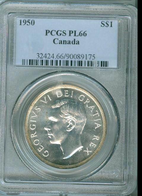1950 $1 PCGS PL66. Brilliant with reflective surfaces.