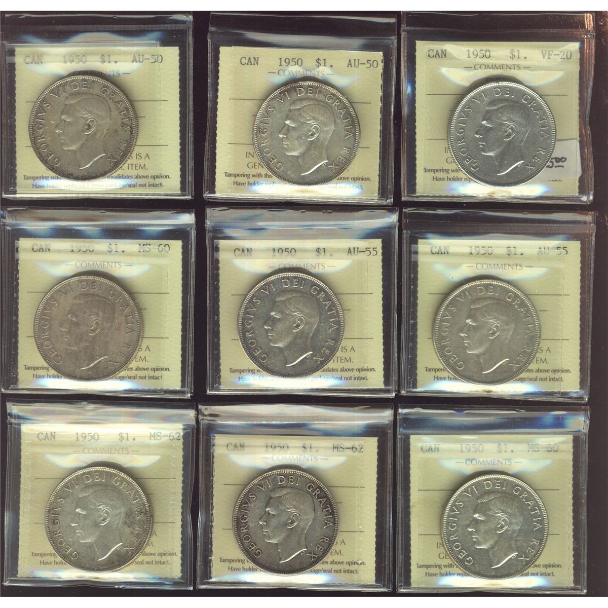 1950 $1 SWL ICCS VF20 to MS62. Lot of 9 pcs.