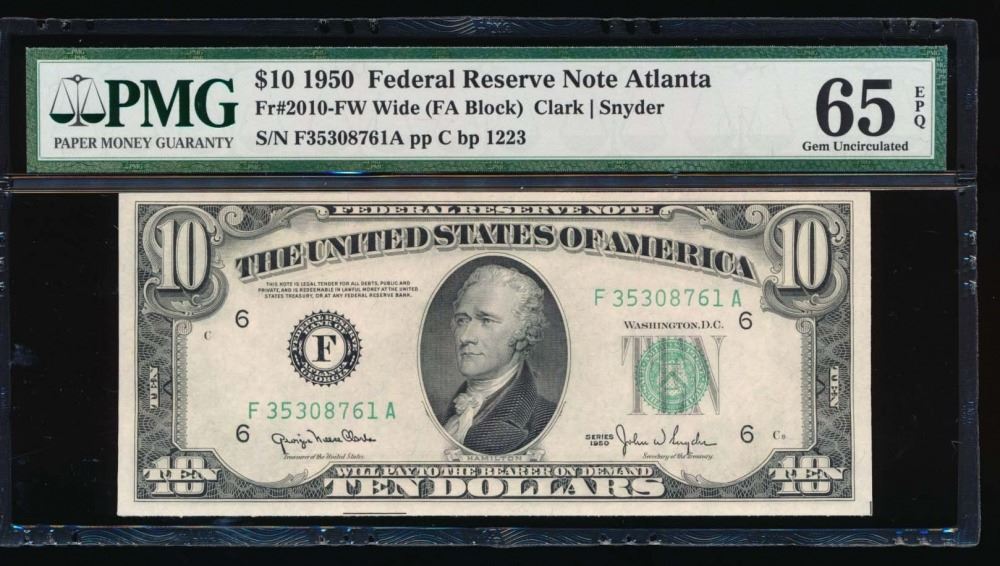 One 1950 $10 Atlanta Federal Reserve Note PMG 65EPQ.