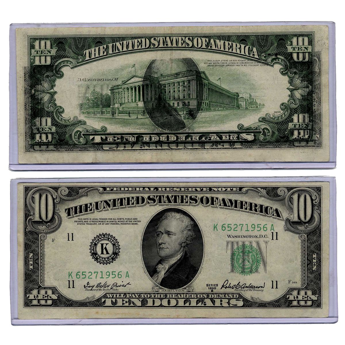 $10 Federal Reserve Error Note -- Series 1950, Dallas -- Major Face to Back Printing Error