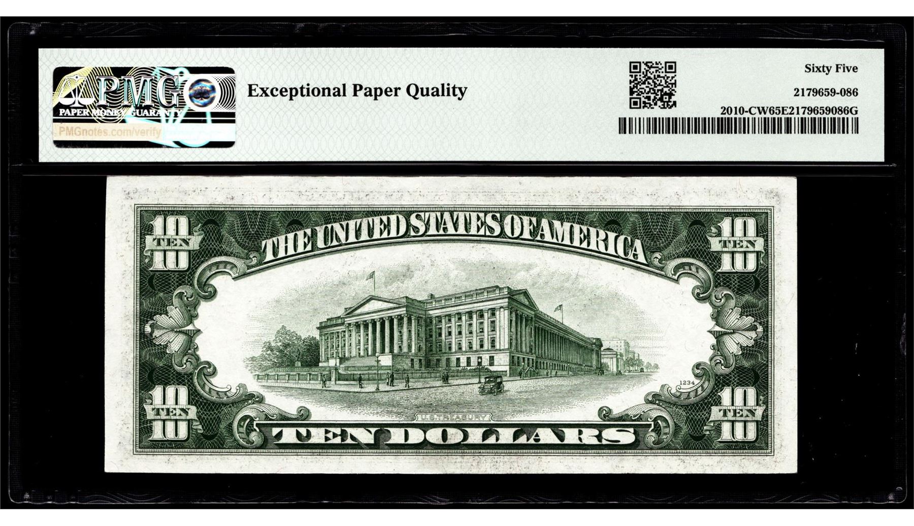 One 1950 $10 Federal Reserve Note Philadelphia Fr.2010-CW PMG Gem Uncirculated 65EPQ. PMG Certified.