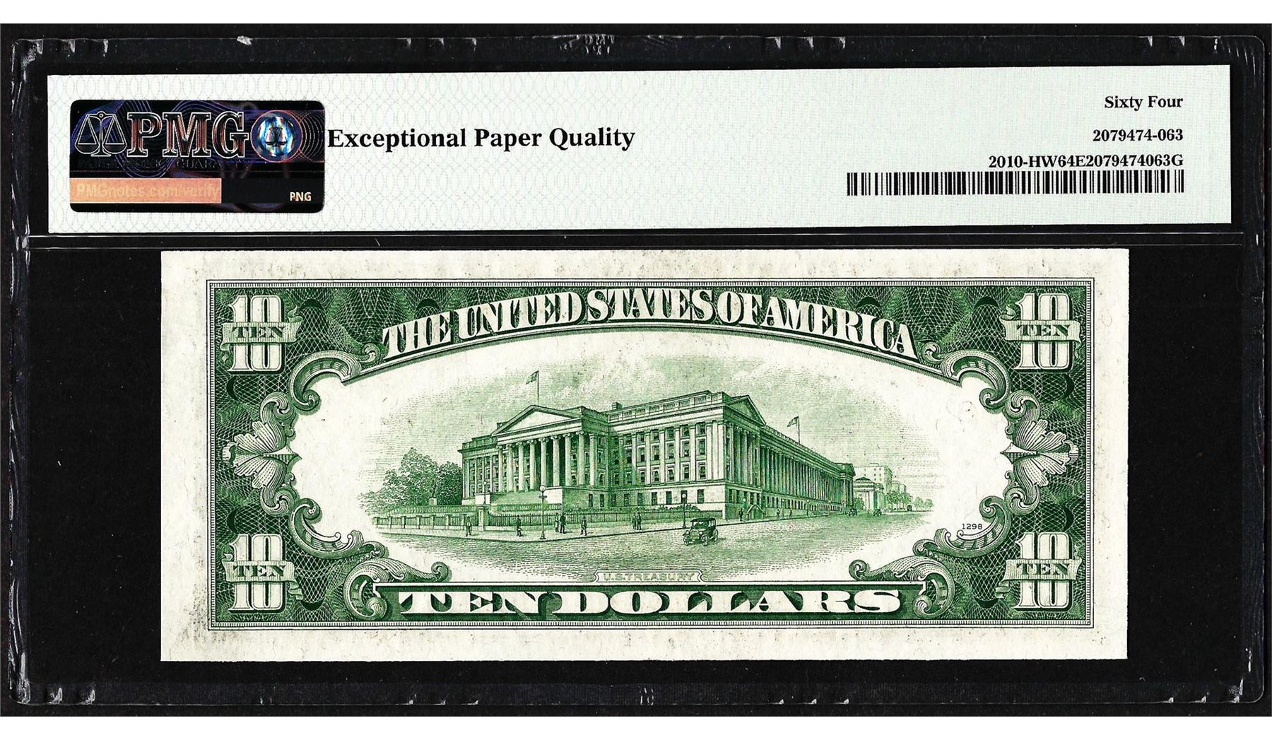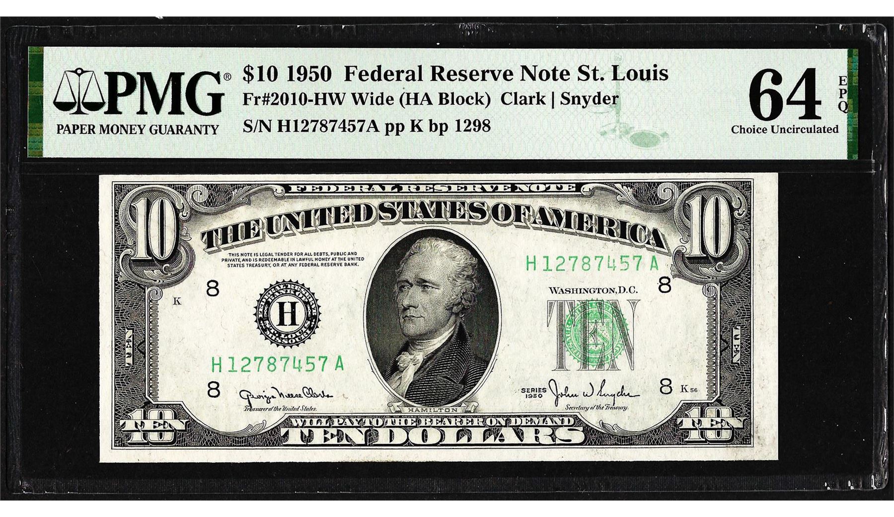 One 1950 $10 Federal Reserve Note St. Louis Fr.2010-HW PMG Choice Uncirculated 64EPQ. PMG Certified.