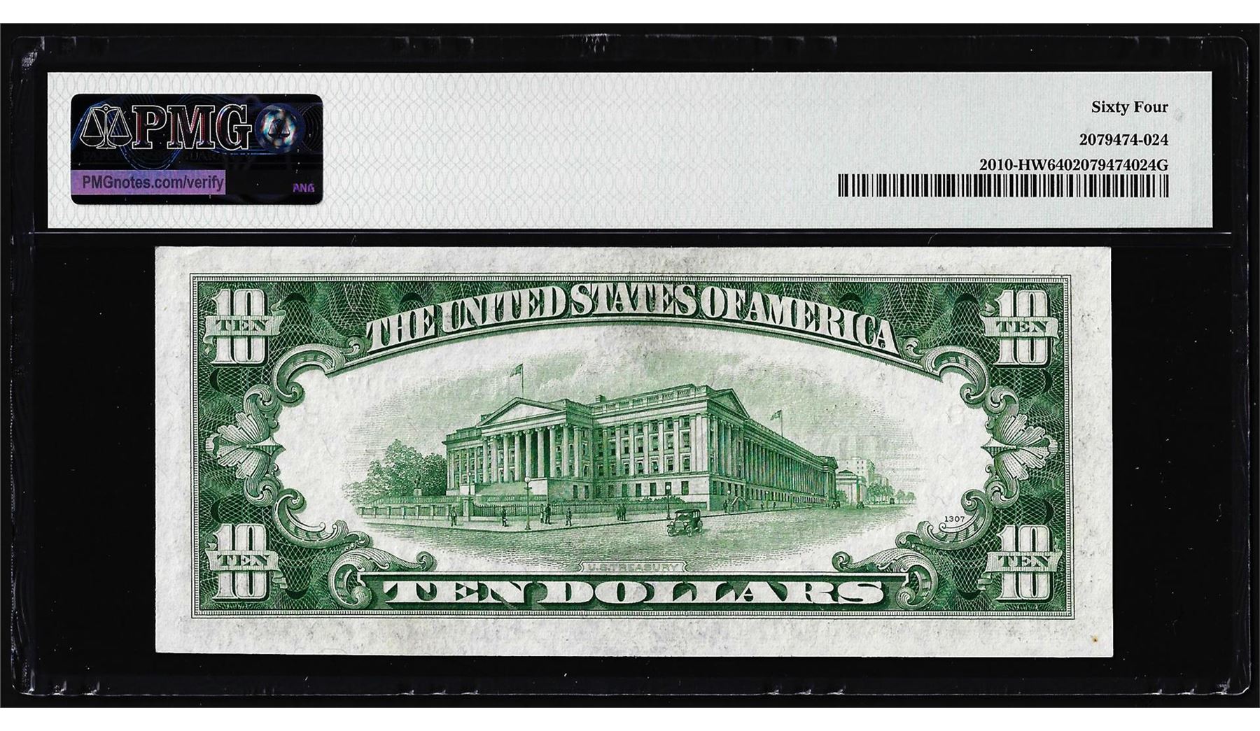 One 1950 $10 Federal Reserve Note St. Louis Fr.2010-HW PMG Choice Uncirculated 64EPQ. PMG Certified.