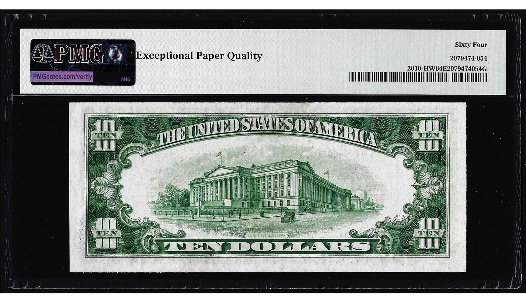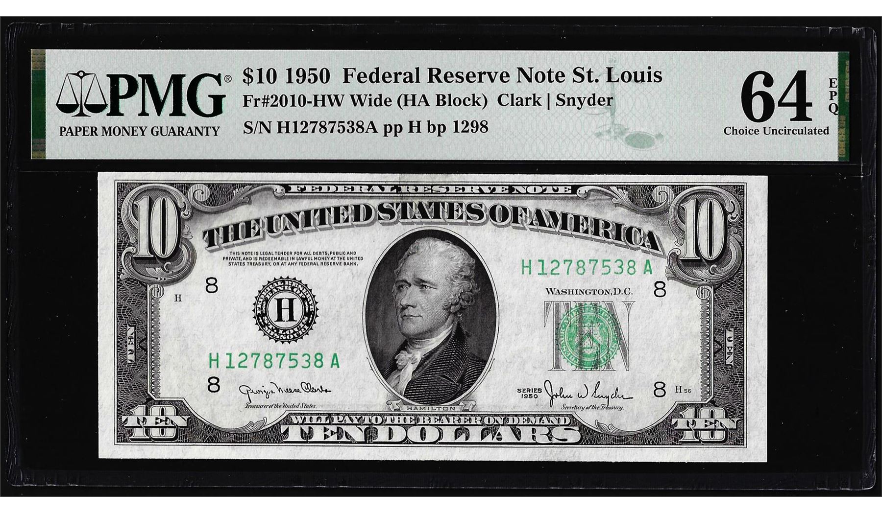 One 1950 $10 Federal Reserve Note St. Louis Fr.2010-HW PMG Choice Uncirculated 64EPQ. PMG Certified.