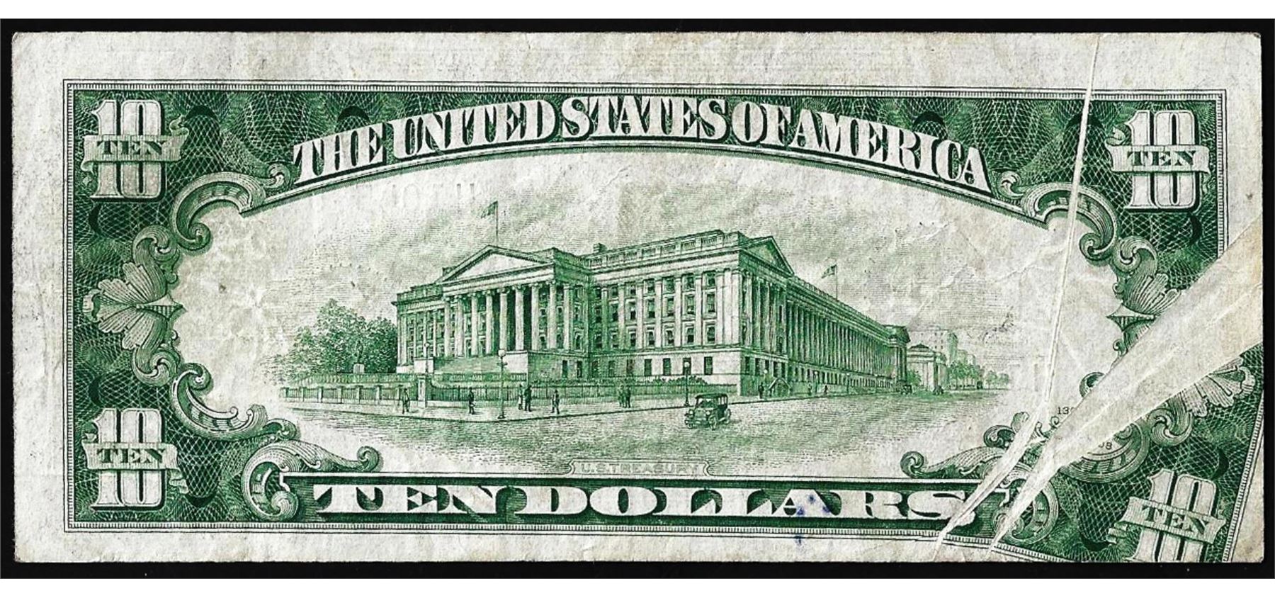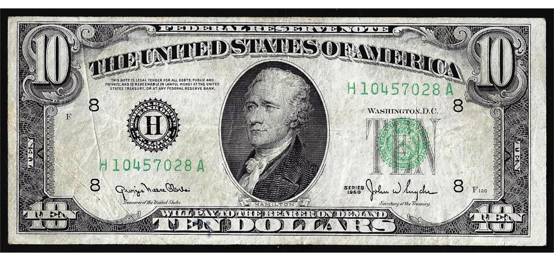 One 1950 $10 Federal Reserve Note St. Louis Multiple Gutter Folds Error.