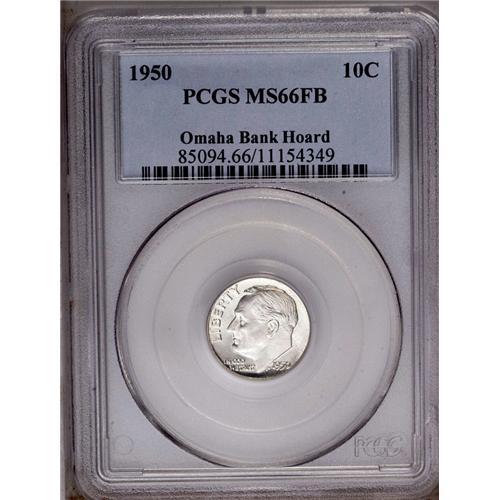 <B>1950 10C MS66 Full Bands PCGS.</B></I> Ex:Omaha Bank Hoard. PCGS Population (95/28). NGC Census: (0/0). Mintage: 50,181,500. (#85094)<BR><BR><b>Shipping:</b> Coins & Currency (<a target="_blank" href="http://www.heritageauctions.com/common/shipping.php">view shipping information</a>)