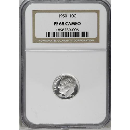 1950 10C PR68 Cameo NGC. This example is exceptionally 1950[10C] PR68 Cameo NGC.