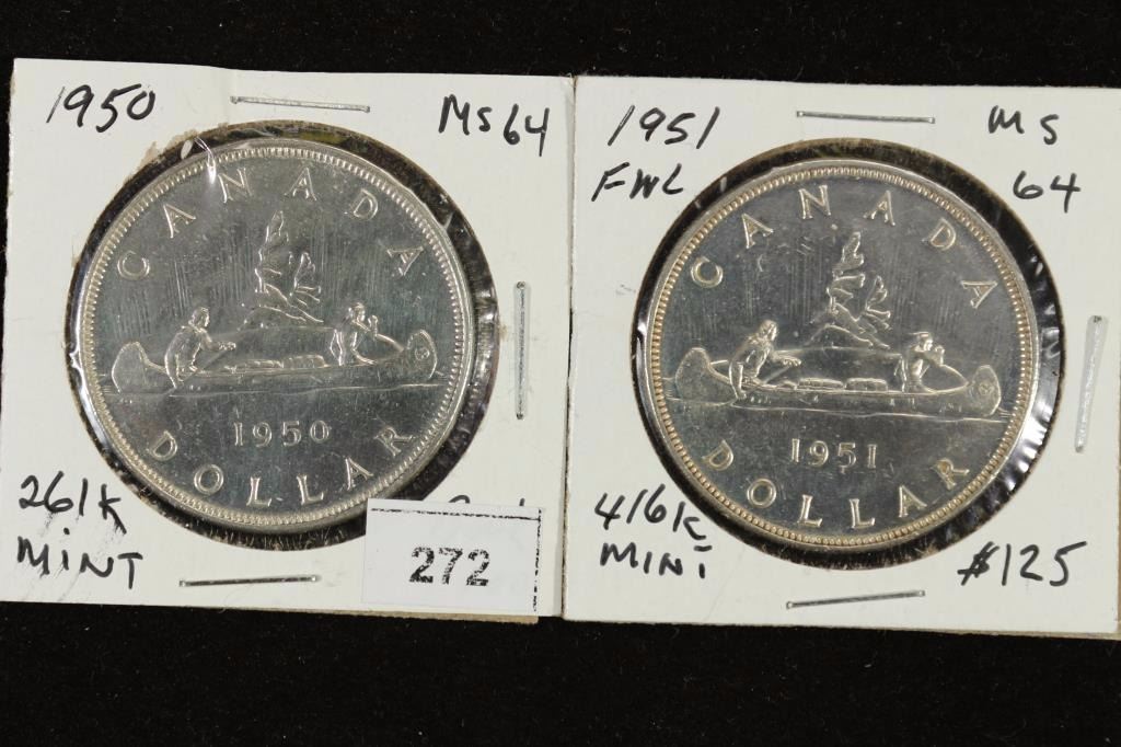1950 & 1951 CANADA SILVER DOLLARS UNC