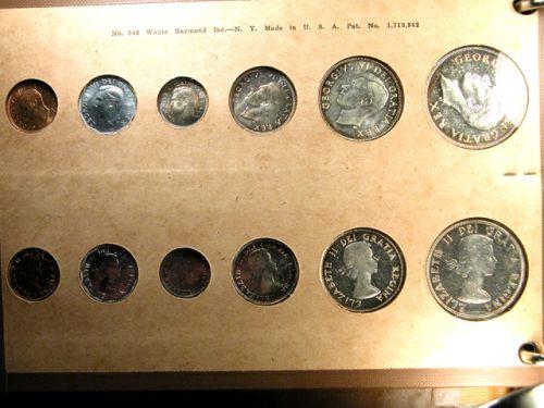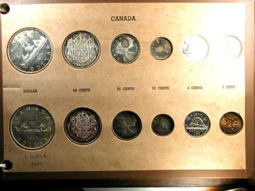 Canada 1950 to 1961 Year Sets and Proof-Like Sets in Wayte Raymond Album. The 1950 set is EF to AU, the 1954 and 1960 sets are Proof-Like, most of the silver with cameos and the remainder of the sets are Uncirculated to Very Choice Uncirculated, the 1955 Dollar is Arnprior with Die Break. The copper is mostly Red, the earlier pieces with carbon and the silver is attractively toned. Total twelve Year and Proof-Like Sets