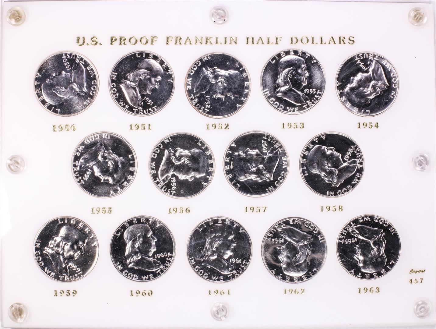 One 1950-1963 Proof Franklin Half Dollar Coin Set in Capitol Plastic.