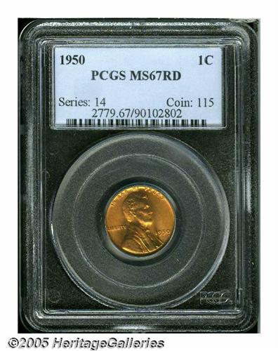 1950 1C MS67 Red PCGS. Full shimmering luster, an