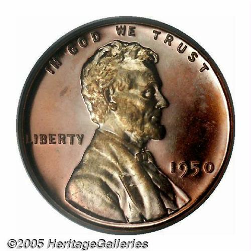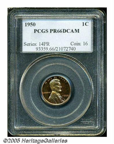 <B>1950<1C> PR66 Red Deep Cameo PCGS.</B></I> Dazzling orange-red and lilac surfaces display excellent depth of mirrored brilliance and possess a degree of contrast on each side that is most unusual for this initial post-War Lincoln Cent proof. An impeccably preserved Deep Cameo that would certainly be a prized acquisition for the Lincoln Cent specialist. Population: 10 in 66 Deep Cameo, 1 finer (4/05).<BR><I>From The Western Hills Collection.</B></I>